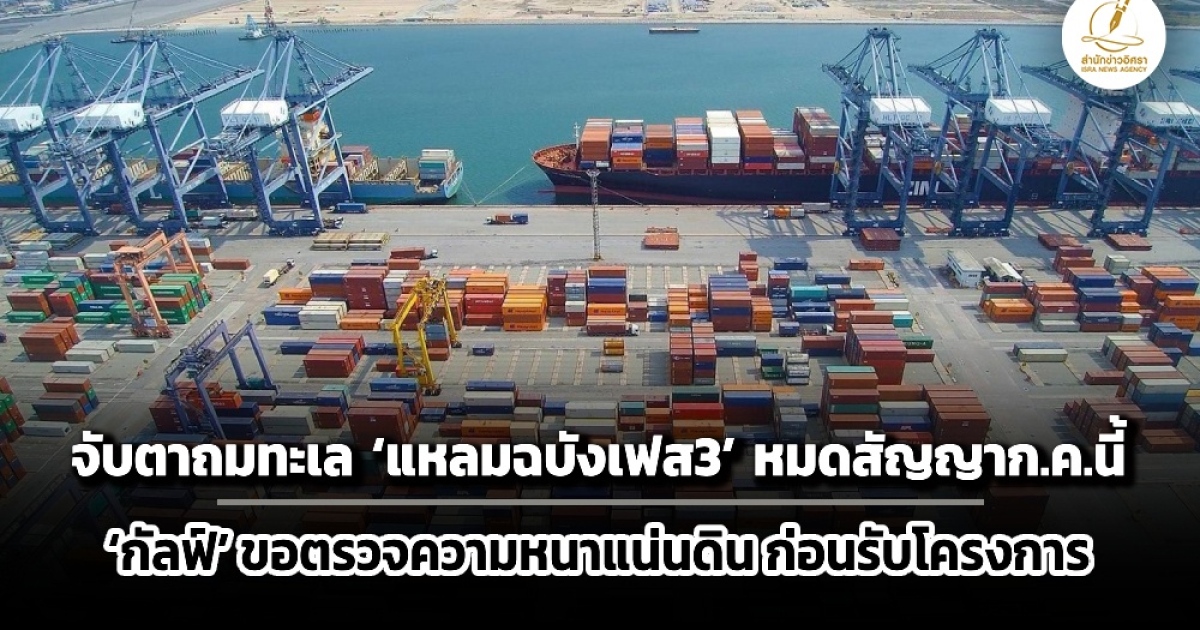 ผอ.ท่าเรือเผยคืบหน้า ‘แหลมฉบังเฟส 3’ งานถมทะเลยังไม่จบ หลังรับเหมาทำเสร็จแล้ว แต่รอตรวจความหนาแน่นของดิน โดยมีกำหนดสิ้นอายุสัญญาก.ค.นี้ ด้านคู่สัญญาโปรเจ็กต์ ‘GPC นำโดยกลุ่มกัลฟ์’ ขอร่วมตรวจความหนาแน่นของดินถมด้วย ก่อนรับมอบโครงการ
