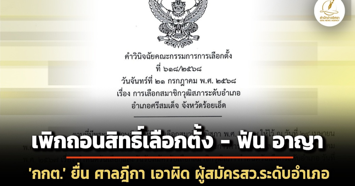 สำนักข่าวอิศรา (www.isranews.org) วันที่ 4 กุมภาพันธ์ 2569 สำนักงานคณะกรรมการการเลือกตั้ง (กกต.) เผยแพร่คำวินิจฉัยคณะกรรมการ กกต. ที่ 618/2568 เรื่อง การเลือกสมาชิกวุฒิสภา (สว.) ระดับอำเภอ อำเภอศรีสมเด็จ จังหวัดร้อยเอ็ด โดยมีคำสั่งให้ยื่นคำร้องต่อศาลฎีกาเพื่อสั่งเพิกถอนสิทธิสมัครรับเลือกตั้งหรือเพิกถอนสิทธิเลือกตั้ง 10 ปี หรือ 20 ปี แล้วแต่กรณี ของนายทองดำ นวลนุกูล นายวิจิตร อินทอง นายบรรเจิด สีสุมัง และ นายบุญฤทธิ์ พลหงสา ผู้สมัคร สว. ระดับอำเภอฯ กลุ่ม 16 นายสำรอง ยศเฮือง และนายสมยศ ปานพูล ผู้ซึ่งผู้ไม่ใช่ผู้สมัคร ตามพระราชบัญญัติประกอบรัฐธรรมนูญ (พ.ร.ป.) ว่าด้วยการได้มาซึ่ง สว. 2561 มาตรา 62 และรัฐธรรมนูญแห่งราชอาณาจักรไทย พุทธศักราช 2560 มาตรา 226