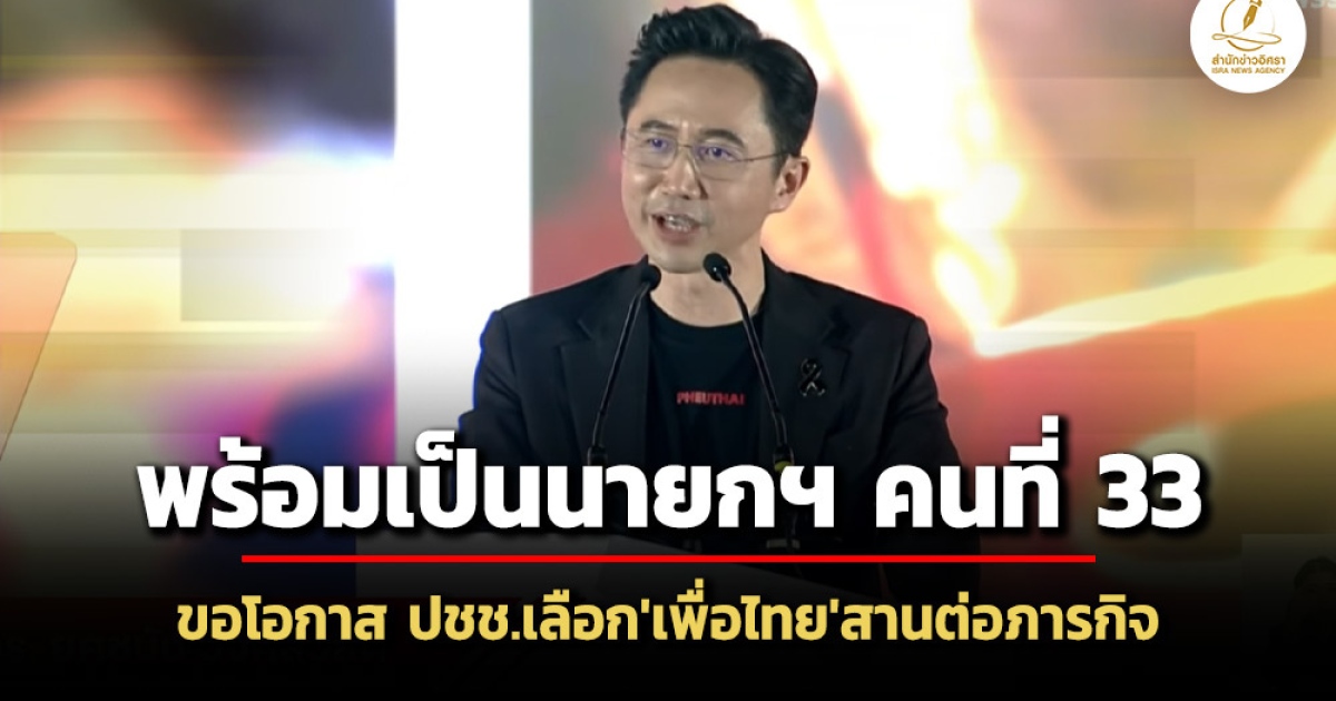 'ยศชนัน วงศ์สวัสดิ์' ลั่นพร้อมเป็นนายกรัฐมนตรี คนที่ 33 ขอโอกาสประชาชนเลือก 'เพื่อไทย' สานต่อภารกิ ชูโมเดลใช้ 'วิทยาศาสตร์-เทคโนโลยี' ยกระดับรายได้เกษตรกร-ดึงเศรษฐกิจเข้าระบบ พร้อมสร้างรัฐบาลดิจิทัลปราบทุจริต