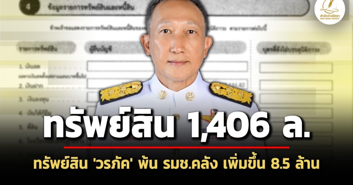 ทั้งนี้ นายวรภัค เคยยื่นบัญชีทรัพย์สิน กรณีเข้ารับตำแหน่ง รมช.คลัง เมื่อวันที่ 24 กันยายน 2568 ก่อนพ้นจากตำแหน่งเพียง 1 เดือนเศษ แจ้งมีทรัพย์สินรวมคู่สมรสทั้งสิ้น 1,398,206,653.31 บาท มีหนี้สินทั้งสิ้น 9,954,783.08 บาท