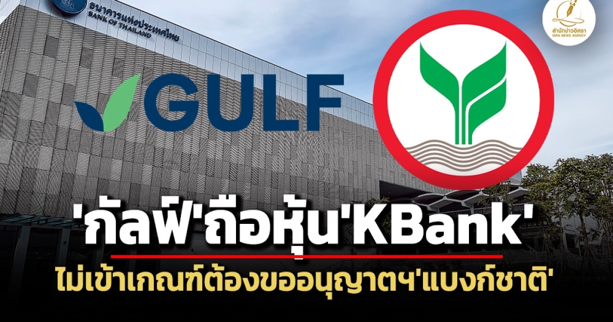 ‘ธปท.’ แจง GULF ถือหุ้น ‘แบงก์กสิกรไทย’ ยังไม่ข้าม 10% ไม่เข้าข่ายต้องขออนุญาตฯ ระบุเกณฑ์คำนวณการถือหุ้น ‘ธปท.-ก.ล.ต.’ แตกต่างกัน