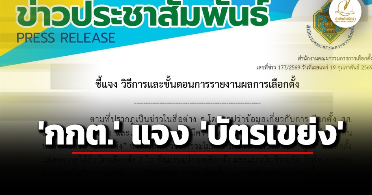 สำนักข่าวอิศรา (www.isranews.org) รายงานว่า วันที่ 19 กุมภาพันธ์ 2569 2569 สำนักงานคณะกรรมการการเลือกตั้ง (กกต.) เผยแพร่ข่าวประชาสัมพันธ์ ชี้แจง กรณีที่ปรากฏผ่านสื่อว่าข้อมูลเกี่ยวกับผลคะแนนการเลือกตั้ง สส. แบบแบ่งเขตเลือกตั้ง และแบบบัญชีรายชื่อ ในระบบ ECT Report 69 ผ่านทางเว็บไซต์รายงานผลคะแนนเลือกตั้ง สส. และการออกเสียงประชามติ อย่างไม่เป็นทางการ (https://ectreport69.ect.go.th) ตามข้อ 2 (2) มีความแตกต่างกันเป็นจำนวนมากหรือไม่เท่ากันหรือที่เรียกว่า "บัตรเขย่ง" นั้น ขอเรียนชี้แจงว่า