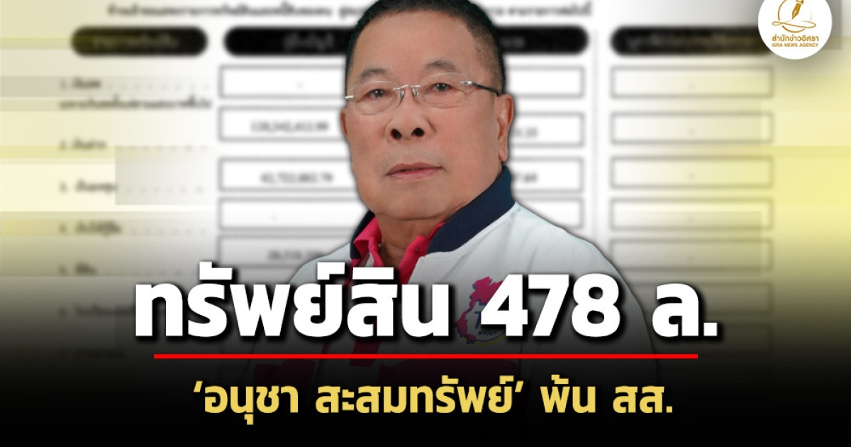 ข่าวที่เกี่ยวข้อง: 480 ล้าน! ทรัพย์สิน'อนุชา สะสมทรัพย์'พ้น รมช.สธ. รายได้ 72 ล./ปี ปืน 40 กระบอก