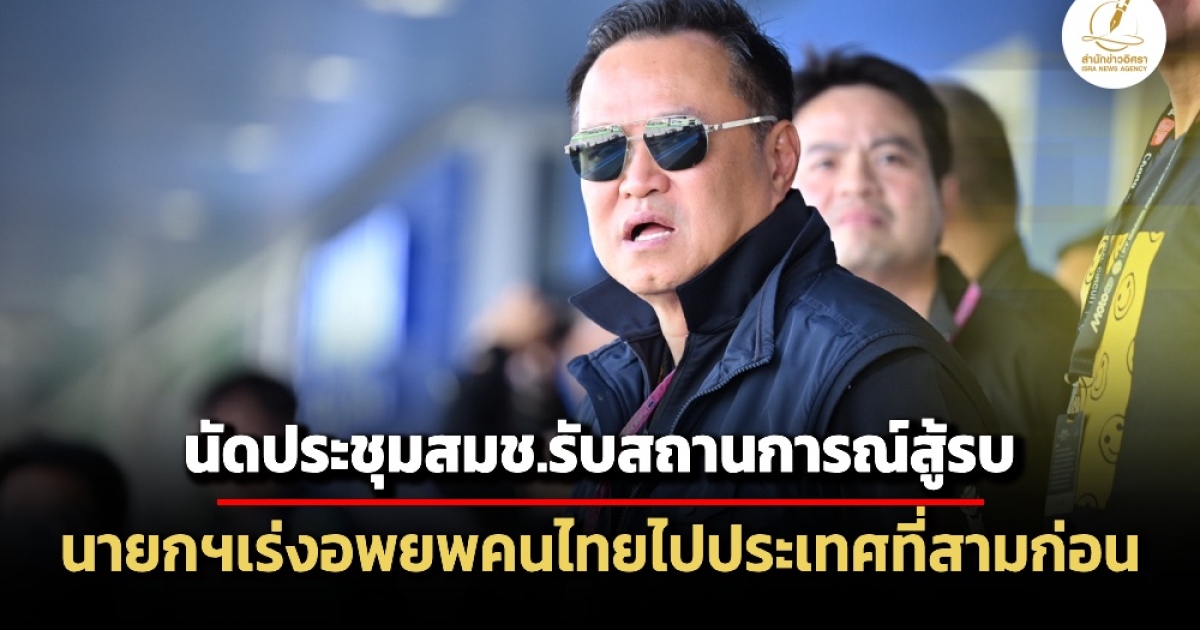นายกฯนัดประชุมสมช.พรุ่งนี้ (2 มี.ค. 69) รับสถานการณ์สู้รบพื้นที่ตะวันออกกลาง เปิดแผนเร่งอพยพคนไทยไปประเทศที่สามก่อน สั่ง ‘เอกนิติ’ เตรียมมาตรการรับแรงกระแทก พร้อมนัดประชุมร่วมทุกภาคส่วน ทั้งภาคเอกชน ธนาคาร และหอการค้า เพื่อดูแลการค้า การนำเข้า–ส่งออก และพิจารณามาตรการดูแลราคาไม่ให้กระทบผู้บริโภคในประเทศ