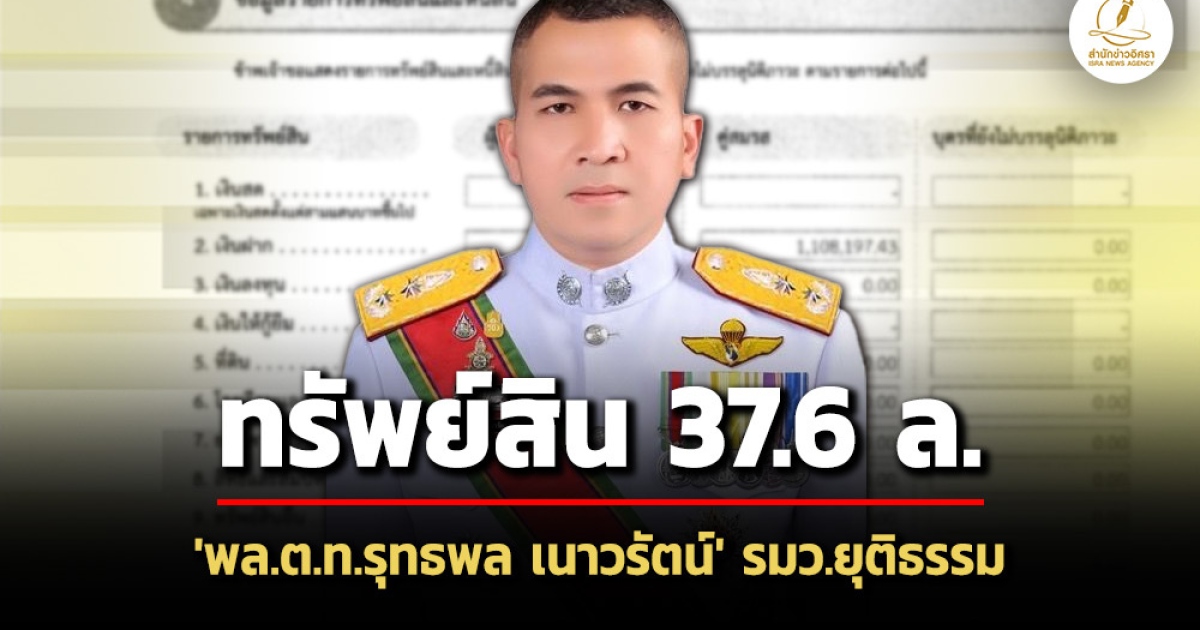 บัญชีทรัพย์สิน 'พล.ต.ท.รุทธพล เนาวรัตน์' กรณีเข้ารับตำแหน่งรัฐมนตรีว่าการกระทรวงยุติธรรม 37.65 ล้าน ไร้หนี้สิน สะสมปืน 12 กระบอก-พระเครื่องเลี่ยมทอง 27องค์ แจ้งรายได้ต่อปี 1.1 ล.