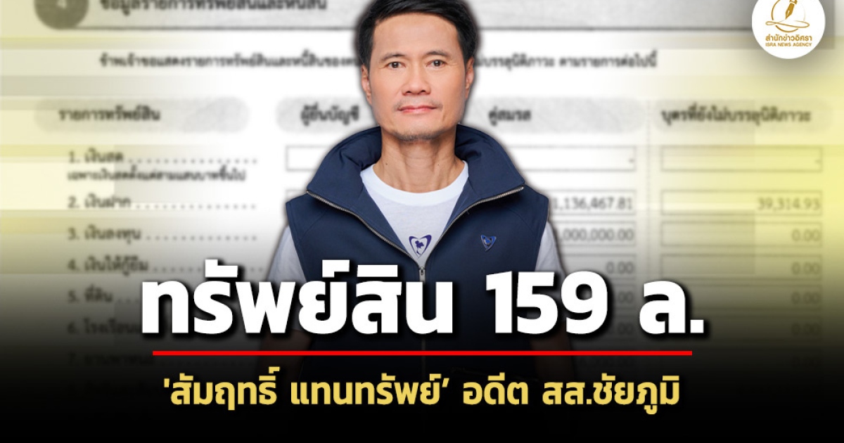 บัญชีทรัพย์สิน ‘สัมฤทธิ์ แทนทรัพย์’ พ้นเก้าอี้ ส.ส.ชัยภูมิ 159 ล้าน ครองที่ดิน 152 แปลง-สิ่งปลูกสร้างรวมคู่สมรส 2 รายอีก 46 หลัง มีธุรกิจรับซื้อขายมันสำปะหลัง เทียบช่วงภรรยานั่งนายก อบจ. ปี 67 เพิ่มขึ้น 3.7 ล.