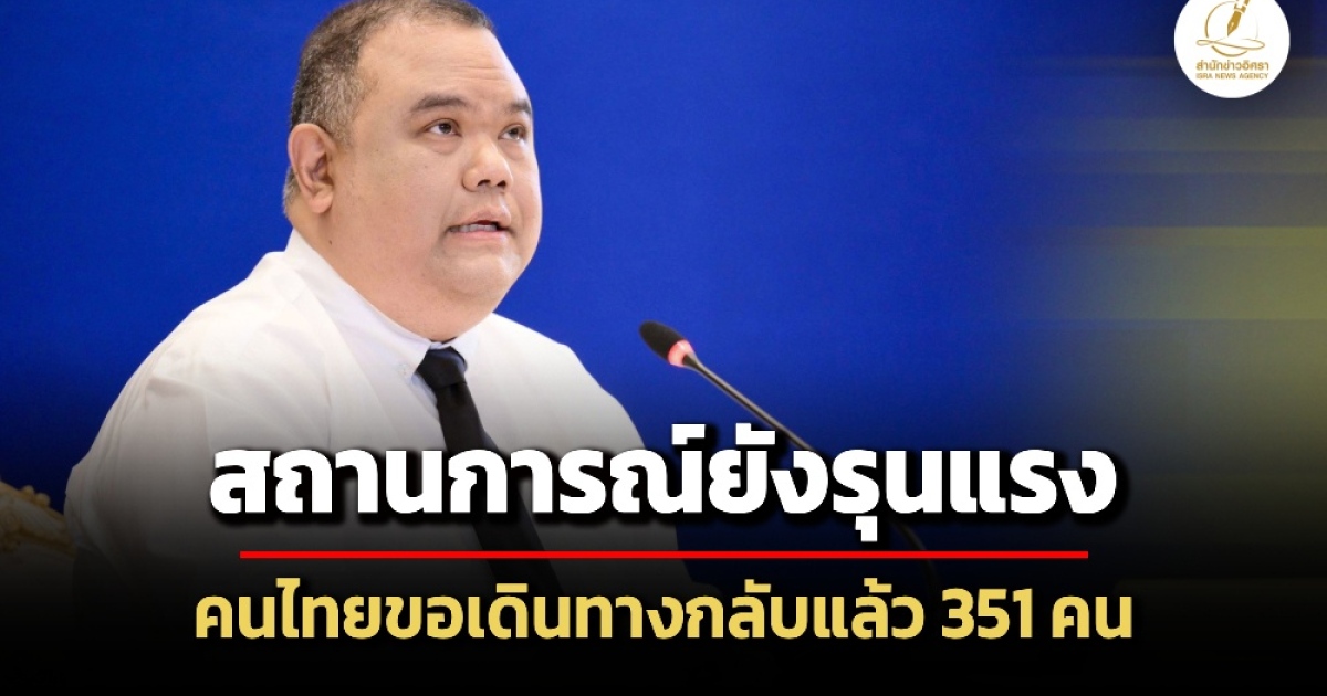 ศบก.แถลงการสถานการณ์ตะวันออกกลาง ภาพรวมยังรุนแรงต่อเนื่อง 3 ชาติหลัก ‘อเมริกา-อิสราเอล-อิหร่าน’ ไร้แววเจรจา ส่วนภารกิจพาคนไทยกลับบ้าน ขอกลับแล้ว 351 คน ที่อิรักก็ขอกลับอีก 14 คน