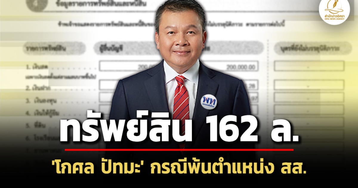 สำนักข่าวอิศรา (www.isranews.org) รายงานว่า เมื่อวันที่ 12 มีนาคม 2569 สำนักงานคณะกรรมการการป้องกันและปราบการทุจริตแห่งชาติ (ป.ป.ช.) เปิดเผยบัญชีแสดงรายการทรัพย์สินและหนี้สิน นายโกศล ปัทมะ กรณีพ้นจากตำแหน่งสมาชิกสภาผู้แทนราษฎร (สส.) เมื่อวันที่ 12 ธันวาคม 2568