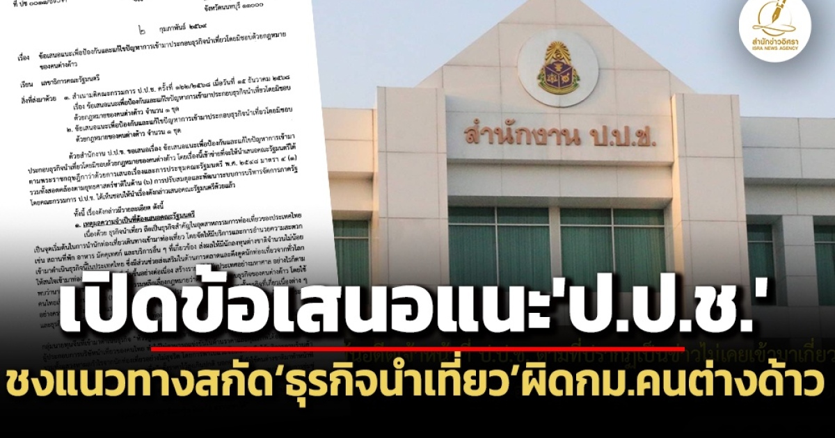 สำนักข่าวอิศรา (www.isranews.org) รายงานว่า สำหรับข้อเสนอแนะเพื่อป้องกันและแก้ไขปัญหาการเข้ามาประกอบธุรกิจนำเที่ยวโดยมิชอบด้วยกฎหมายของคนต่างด้าว ที่ ป.ป.ช. เสนอ ครม. รับทราบ มีรายละเอียด ดังนี้