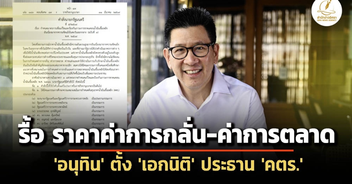 ราชกิจจานุเบกษา เผยแพร่ ‘คำสั่งนายกฯ’ ตั้ง ‘เอกนิติ’ ประธาน ‘คตร.’ ศึกษาหลักเกณฑ์-กำหนดค่าการกลั่น-ค่าการตลาด-ค่าขนส่ง คำนวณราคาขายส่งหน้าโรงกลั่น ราคาขายให้โรงกลั่น - Jobber - สถานีบริการน้ำมัน เสนอ ‘ครม.’ ภายใน 15 วัน