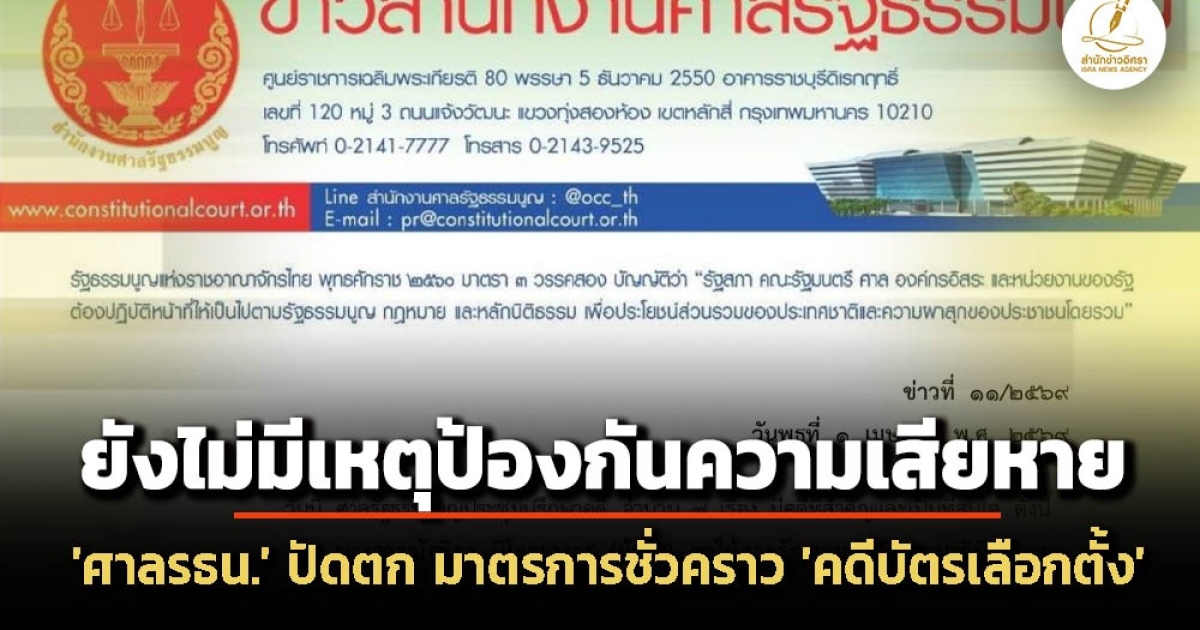 • ศาลรัฐธรรมนูญ ปัดตก คำร้องขอออกมาตรการชั่วคราว ก่อนวินิจฉัย 'คดีบัตรเลือกตั้ง' ไม่เป็นความลับ