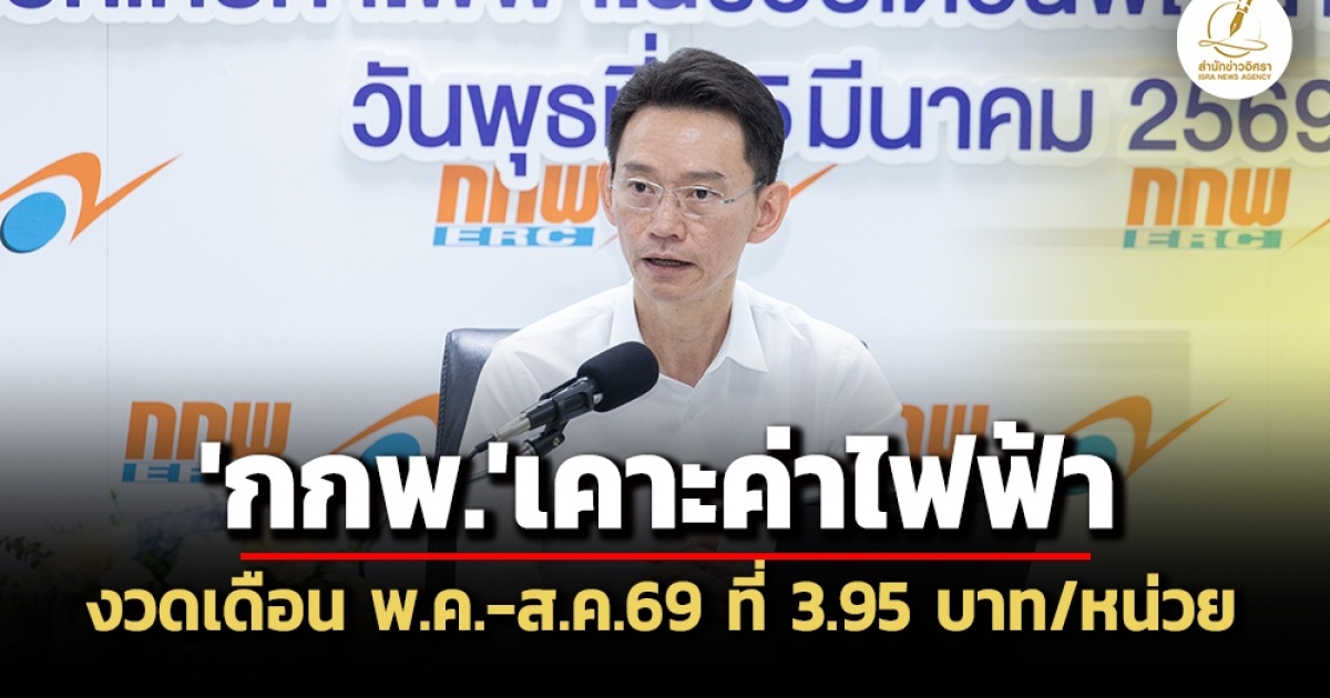 3.95-4.59 บาท/หน่วย! ‘กกพ.’เคาะ 3 ทางเลือก ขึ้นค่าไฟฟ้างวด พ.ค.-ส.ค.69 หลังราคา LNG พุ่ง