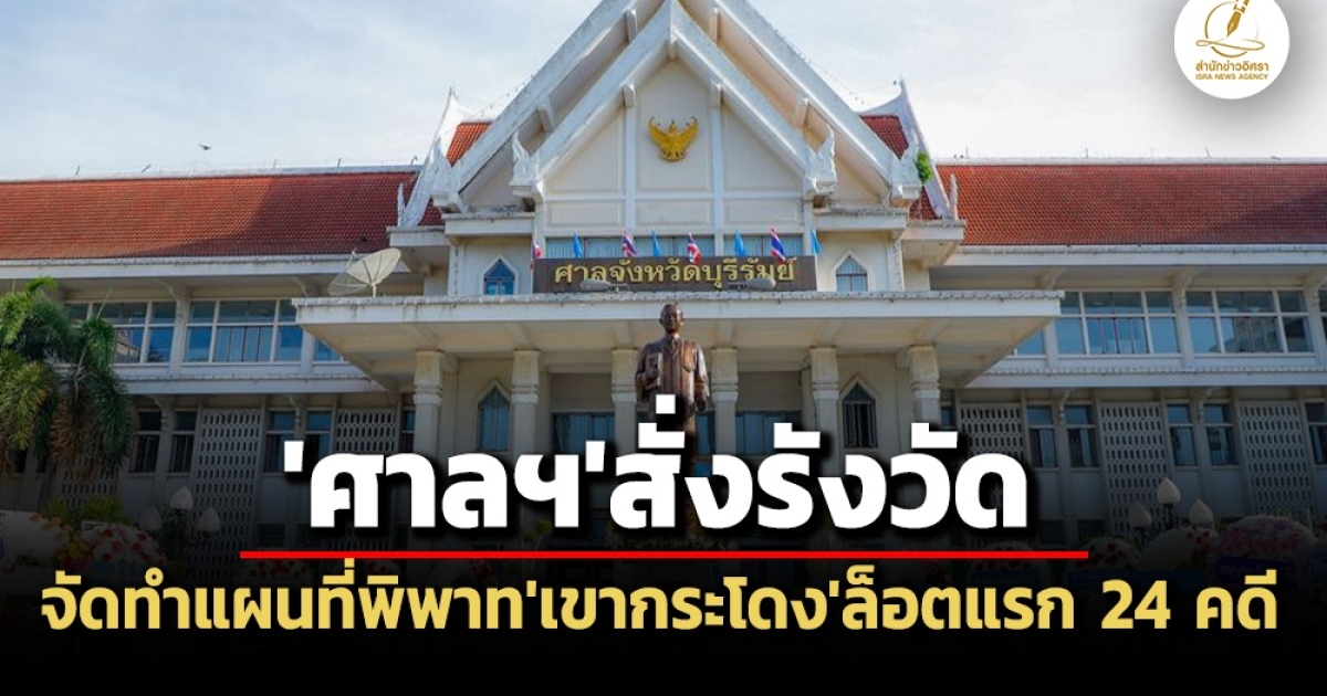 โดยศาลจังหวัดบุรีรัมย์ขอให้เจ้าพนักงานที่ดินจังหวัดบุรีรัมย์ ดำเนินการรังวัดจัดทำแผนที่พิพาทในคดีเขากระโดง จ.บุรีรัมย์ เพื่อประกอบการพิจารณาพิพากษาและบังคับคดีของศาลฯ ใน 24 คดี และขอให้เจ้าพนักงานที่ดินจังหวัดบุรีรัมย์จัดส่งแผนที่พิพาทให้ศาลจังหวัดบุรีรัมย์ทราบก่อนวันที่ 18 พ.ค.2569 ประกอบด้วย