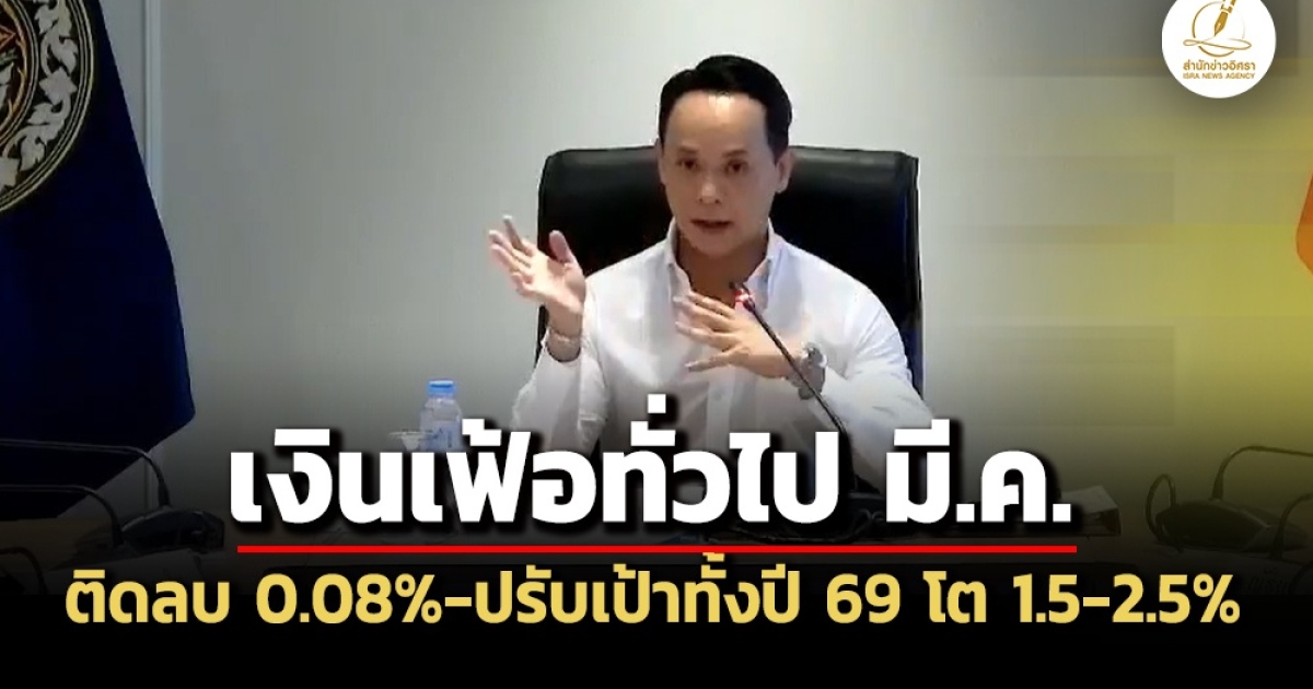 ‘พาณิชย์’ เผยอัตราเงินเฟ้อทั่วไป มี.ค. ติดลบ 0.08% เหตุรัฐตรึง ‘น้ำมัน-ค่าไฟ’ สินค้ายังเป็น ‘สต็อกเก่า’ พร้อมปรับเป้าเงินเฟ้อทั้งปี 69 โต 1.5-2.5% จากเดิม 0-1% หลังเจอ ‘วิกฤติพลังงาน’