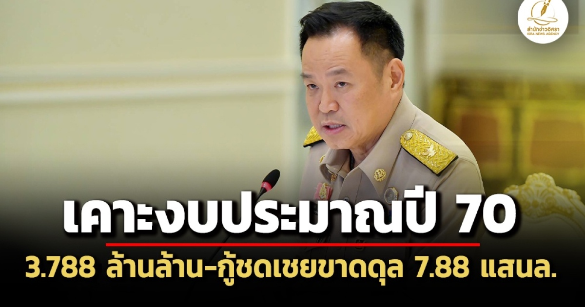 ที่ประชุม 4 หน่วยงาน เคาะกรอบงบประมาณปี 70 วงเงิน 3.788 ล้านล้าน กู้ชดเชยขาดดุลงบฯ 7.88 แสนล้านบาท ขณะที่ ‘เอกนิติ’ เผยคงเพดาน 'หนี้สาธารณะ' 70%
