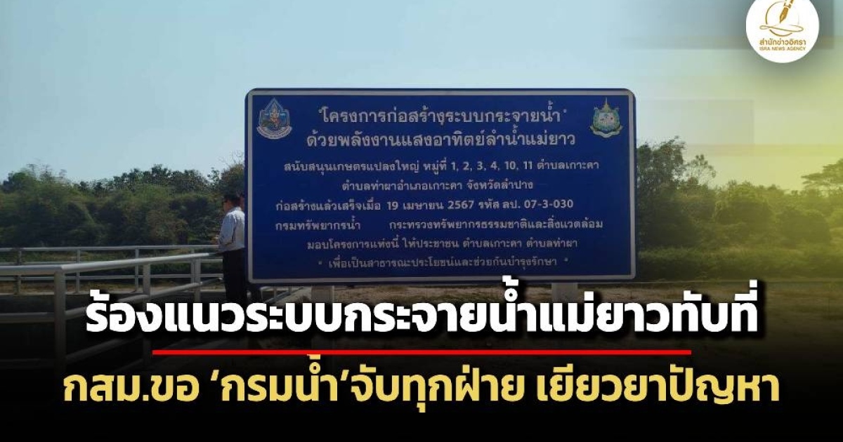 สำนักข่าวอิศรา (www.isranews.org) รายงานว่า วันที่ 14 ก.พ. 2568 นายจุมพล ขุนอ่อน ที่ปรึกษาสำนักงาน กสม. เปิดเผยว่า คณะกรรมการสิทธิมนุษยชนแห่งชาติ (กสม.) ได้รับเรื่องร้องเรียนจากผู้ร้องรายหนึ่งเมื่อเดือนกรกฎาคม 2567 ระบุว่า ตนและประชาชนรวม 9 ราย ได้รับความเสียหายจากการดำเนินโครงการก่อสร้างระบบกระจายน้ำด้วยพลังงานแสงอาทิตย์ลำน้ำแม่ยาว สนับสนุนการเกษตรแปลงใหญ่ หมู่ที่ 1 2 3 4 10 11 ตำบลเกาะคา ตำบลท่าผา อำเภอเกาะคา จังหวัดลำปาง ของสำนักงานทรัพยากรน้ำที่ 1 กรมทรัพยากรน้ำ ผู้ถูกร้อง ซึ่งมีการวางท่อส่งน้ำรุกล้ำเข้าไปในที่ดินมีโฉนดของประชาชนหลายรายโดยไม่ได้รับความยินยอม จึงขอให้ตรวจสอบ