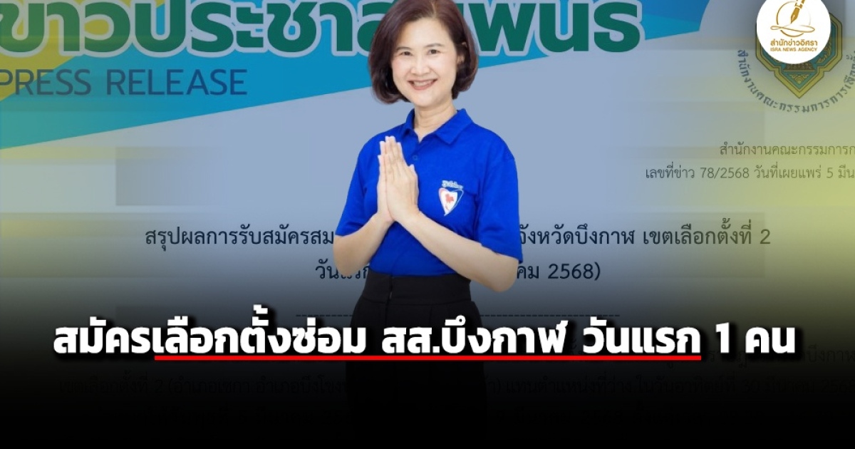 สำนักงานคณะกรรมการการเลือกตั้ง เผย รับสมัครเลือกตั้ง สส.บึงกาฬ เขต 2 แทนตำแหน่งที่ว่าง วันแรก มีผู้สมัคร 1 คน – ‘อรอุมา บุญศิริ’ จากพรรคภูมิใจไทย ได้หมายเลข 1