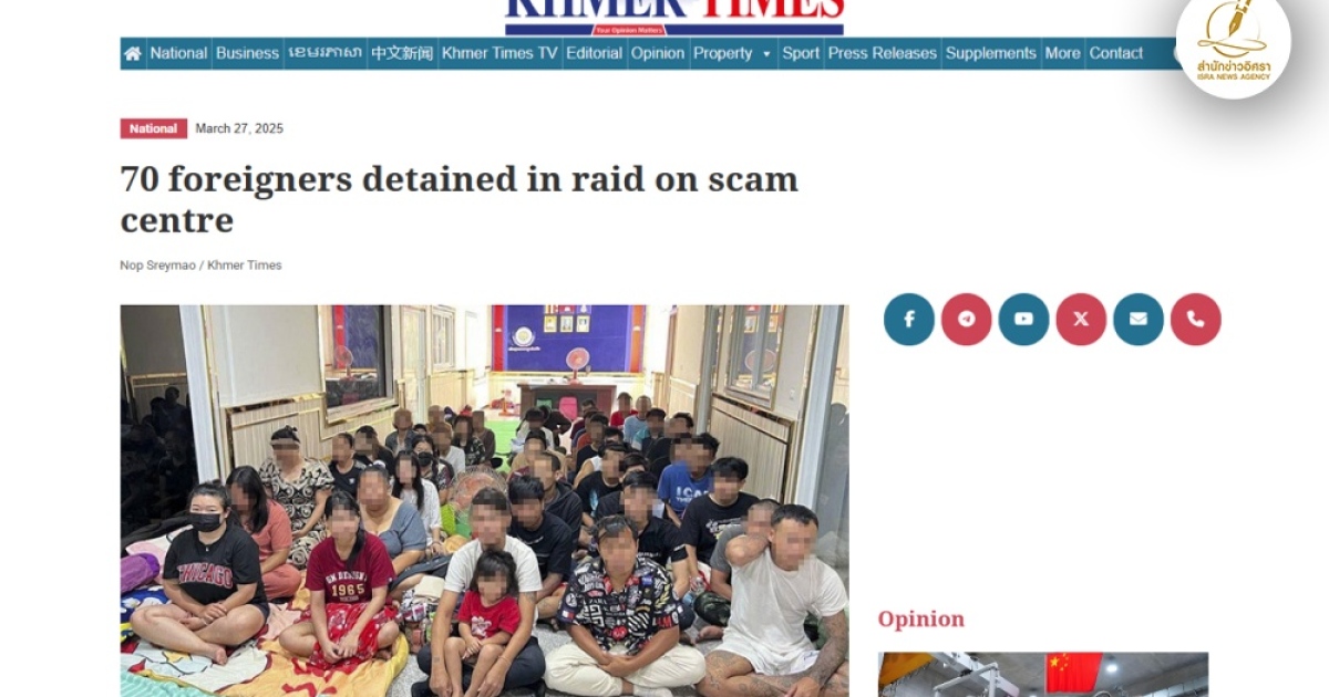 สำนักข่าวอิศรา (www.isranews.org) รายงานว่าสำนักข่าวขแมร์ไทม์ รายงานถึง เจ้าหน้าที่ตำรวจกัมพูชา บุกทลายเครือข่ายอาชญากรรมออนไลน์ในเมืองปอยเปต จังหวัดบันเตียเมียนเจย พร้อมควบคุมตัวชาวต่างชาติ 70 คน ซึ่งรวมถึงชาวไทย 63 คน หลังสืบสวนพบการดำเนินการของกลุ่มอาชญากรไทย 7 รายที่ลักลอบใช้พื้นที่ 2 แห่งในกัมพูชาเป็นฐานปฏิบัติการ