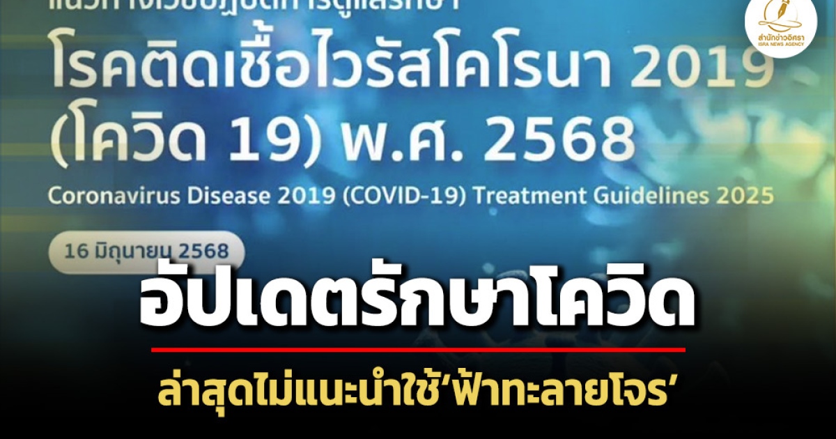 สำนักข่าวอิศรา (www.isranews.org) รายงานว่า เมื่อวันที่ 18 มิ.ย. 2568 เพจเฟซบุ๊ก ราชวิทยาลัยอายุรแพทย์แห่งประเทศไทย ระบุถึงแนวทางเวชปฏิบัติการดูแลรักษาโรคติดเชื้อไวรัสโคโรนา 2019 (โควิด 19) พ.ศ. 2568 Coronavirus Disease 2019 (COVID-19) Treatment Guidelines 2025