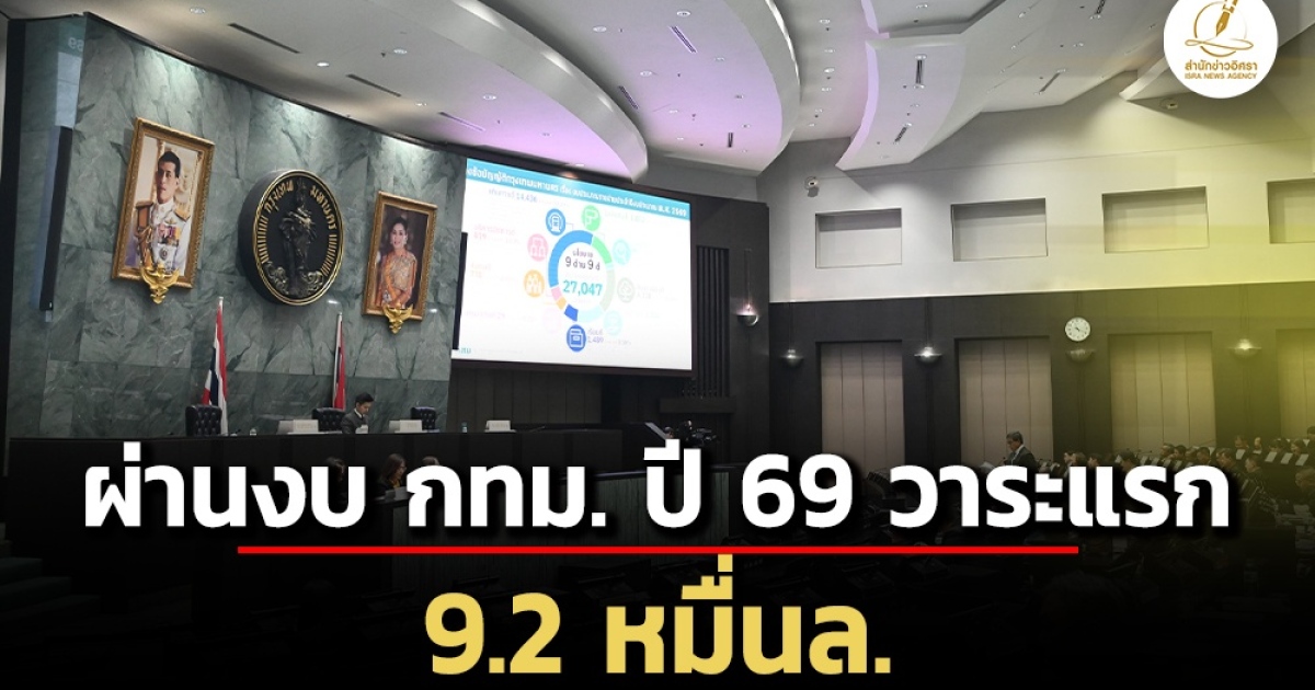 สภากทม.เข็นงบปี 69 วงเงิน 9.2 หมื่นล้านบาทผ่านวาระแรกแล้ว กำหนกแปรญัตติ 45 วัน ก่อนพิจารณาต่อวาระ2-3 วันที่ 15 ก.ย.นี้
