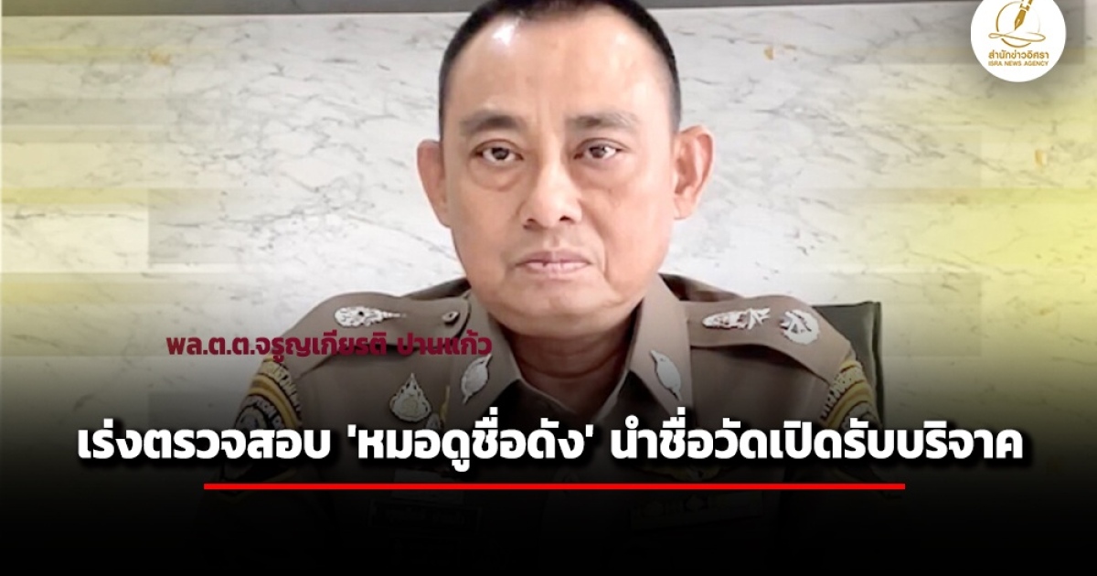 พล.ต.ต.จรูญเกียรติ ปานแก้ว รองผู้บัญชาการตำรวจสอบสวนกลาง เผย กองบังคับการป้องกันปราบปรามการทุจริตและประพฤติมิชอบ เร่งตรวจสอบกรณี ‘หมอดูชื่อดัง’ นำชื่อวัดเปิดรับบริจาค