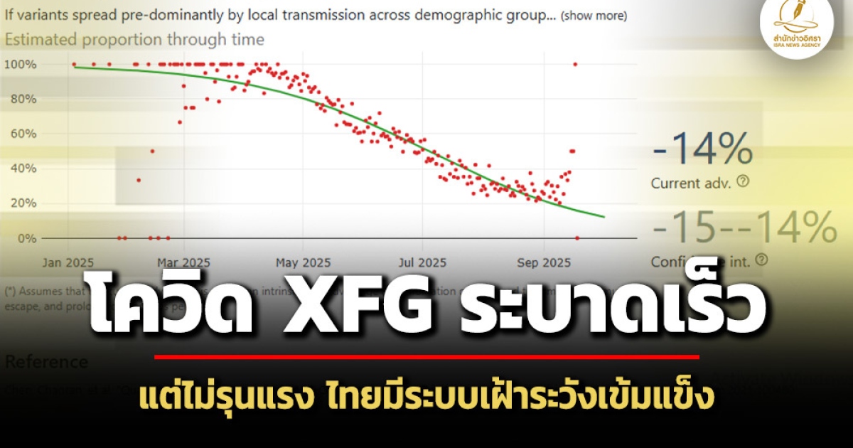 สำนักข่าวอิศรา (www.isranews.org) รายงานว่า วันที่ 7 ตุลาคม 2568 ดร.นพ.สราวุฒิ บุญสุข อธิบดีกรมวิทยาศาสตร์การแพทย์ กล่าวว่า ปัจจุบันการเฝ้าระวังโรคโควิด19 ยังคงดำเนินการอย่างต่อเนื่อง โดยเฉพาะกรณีสายพันธุ์ใหม่ XFG หรือ “Stratus” ที่องค์การอนามัยโลกจัดให้อยู่ในกลุ่มสายพันธุ์ที่ต้องจับตา Variant Under Monitoring (VUM) ตั้งแต่เดือนมิถุนายน 2568 ซึ่งเป็นสายพันธุ์ย่อยของโอมิครอน มีการกลายพันธุ์โปรตีนหนามหลายตำแหน่ง ทำให้แพร่ได้เร็วและอาจหลบภูมิคุ้มกัน อย่างไรก็ตามข้อมูลปัจจุบันยืนยันว่า ยังไม่มีหลักฐานว่าทำให้เกิดอาการรุนแรงมากขึ้น