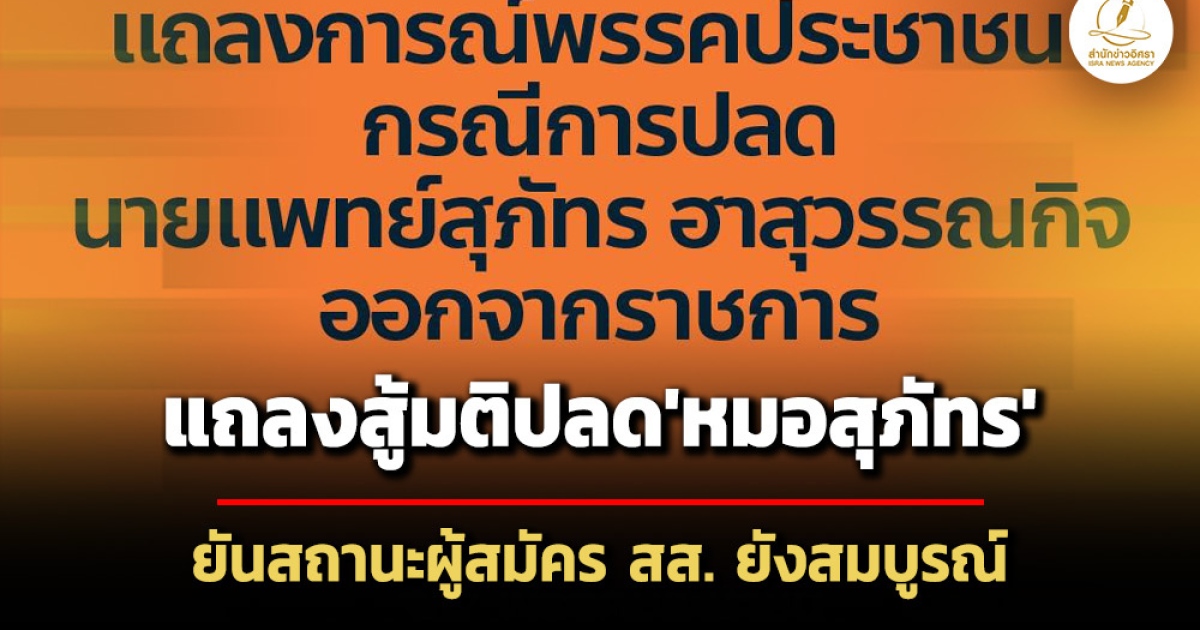 ตามที่มีข่าวปรากฏว่า ในวันที่ 22 มกราคม 2569 อ.ก.พ. กระทรวงสาธารณสุข ที่มีนายพัฒนา พร้อมพัฒน์ รัฐมนตรีว่าการกระทรวงสาธารณสุข และผู้สมัคร สส.บัญชีรายชื่อพรรคภูมิใจไทย เป็นประธาน มีมติเสียงข้างมากให้ปลดนายแพทย์สุภัทร ฮาสุวรรณกิจ อดีต ผอ. โรงพยาบาลจะนะ จ.สงขลา ออกจากราชการ ซึ่งปัจจุบันนายแพทย์สุภัทรได้ลาออกจากราชการมาลงสมัครรับเลือกตั้งเป็นสมาชิกสภาผู้แทนราษฎรของพรรคประชาชนในจังหวัดสงขลา เขต 2
