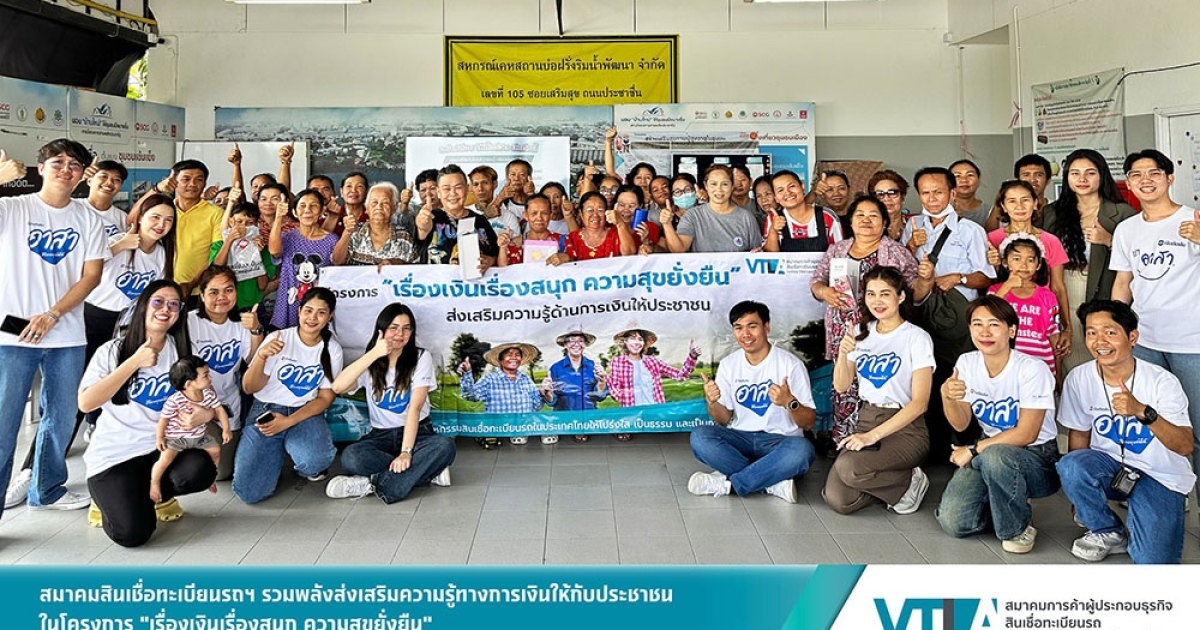 โครงการ “เรื่องเงินเรื่องสนุก ความสุขยั่งยืน” จัดโดย สมาคมการค้าผู้ประกอบธุรกิจสินเชื่อทะเบียนรถ (VTLA) มีวัตถุประสงค์เพื่อส่งเสริมความรู้ทางการเงินขั้นพื้นฐานให้กับชาวบ้านชาวชุมชนทั่วประเทศ โดยใช้หลักสูตร “ปลดหนี้ ชีวิตเป็นสุข” และ “ออมเงินง่ายๆ ที่ใครๆ ก็ทำได้” ผ่านความร่วมมือของสมาชิกสมาคมฯ ซึ่งปัจจุบันสมาคมมีสมาชิกผู้ประกอบการที่ได้รับใบอนุญาตจากธนาคารแห่งประเทศไทยจำนวนรวม 16 ราย มีสาขารวมกันทั่วประเทศกว่า 18,000 สาขา และมีฐานลูกค้ารวมกันกว่า 6 ล้านราย นอกจากนี้ทางสมาคมฯ ขอเรียนเชิญผู้ประกอบการสินเชื่อทะเบียนรถรายอื่น ๆ สมัครเป็นสมาชิกของสมาคมฯ ได้ที่เบอร์โทรศัพท์ 065-919-0644 หรือเยี่ยมชมรายละเอียดเพิ่มเติมเกี่ยวกับสมาคมฯ ได้ที่ www.vtla.or.th
