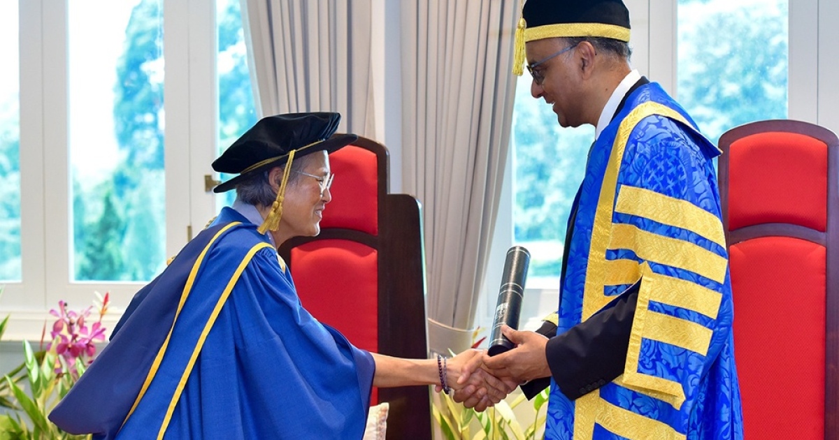 ปริญญากิตติมศักดิ์นี้ถือเป็นเกียรติสูงสุดของมหาวิทยาลัย ที่มอบให้แก่บุคคลผู้ทรงคุณค่าซึ่งได้สร้างคุณูปการอย่างสำคัญทั้งในระดับประเทศและนานาชาติ พิธีถวายปริญญาในครั้งนี้จัดขึ้นที่ทำเนียบประธานาธิบดีสิงคโปร์ (Istana) โดยมีนายธานมัน ชันมูการัตนัม ประธานาธิบดีแห่งสาธารณรัฐสิงคโปร์ และนายกสภามหาวิทยาลัย เป็นประธานในพิธี