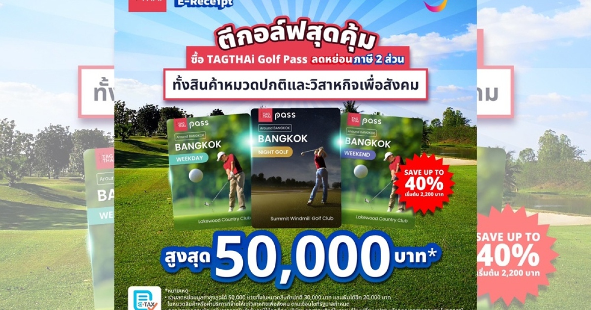 บริษัท ไทย ดิจิทัล แพลตฟอร์ม วิสาหกิจเพื่อสังคม จำกัด หรือ ‘TAGTHAi’ ชวนคุณไปอวดวงสวิงกับดีลตีกอล์ฟพิเศษสุดคุ้มกับ 3 TAGTHAi Golf Pass ณ 2 สนามกอล์ฟชื่อดังย่านบางนาอย่าง Lakewood Country Club และ Summit Windmill Golf Club หรือจะไปเที่ยวไทยแบบบุฟเฟต์กับ TAGTHAi Pass ที่กรุงเทพฯ พัทยา ภูเก็ต เชียงใหม่ ฯลฯ พร้อมรับสิทธิประโยชน์ในการลดหย่อนภาษีในโครงการ Easy E-Receipt 2.0 ให้คุณลดหย่อนภาษีได้ตามยอดที่ซื้อจริง นอกเหนือจากสินค้าปกติ 30,000 บาท เพิ่มได้อีก 20,000 บาท ในหมวดสินค้าหรือค่าบริการที่จ่ายให้แก่วิสาหกิจเพื่อสังคม รวมลดหย่อนมูลค่าสูงสุดได้ 50,000 บาท ตามเงื่อนไขที่รัฐบาลกำหนด