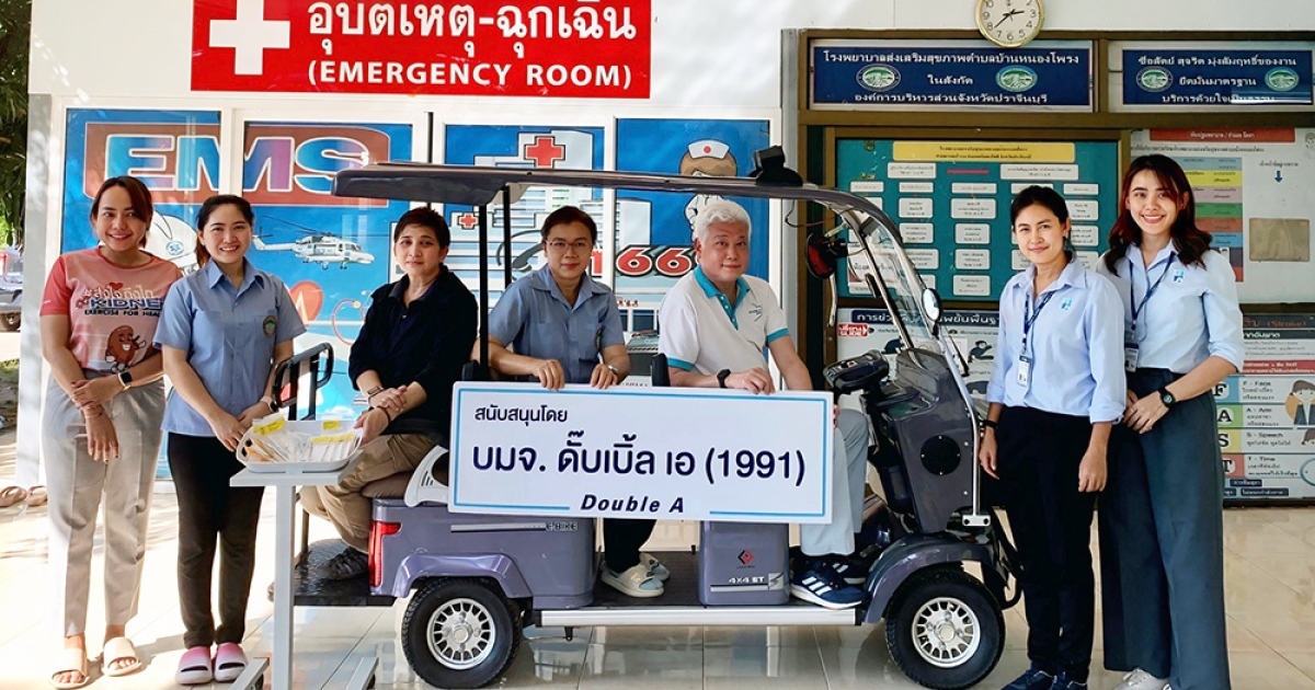 ด้วยความห่วงใยในสุขภาพของคนในชุมชนและสังคมที่ ดั๊บเบิ้ล เอ ได้มีการจัดโครงการสนับสนุนด้านการแพทย์และสาธารณสุขมาอย่างต่อเนื่อง สอดคล้องกับการดำเนินงานอย่างยั่งยืน ตามแนวทาง ESG ขององค์กร โดย นายชาญวิทย์ จารุสมบัติ รองกรรมการผู้จัดการใหญ่ ดั๊บเบิ้ล เอ เป็นตัวแทนมอบอุปกรณ์ทางการแพทย์ ได้แก่ เครื่องมือด้านทันตกรรม และรถไฟฟ้าสำหรับออกหน่วยแพทย์เคลื่อนที่ ให้กับโรงพยาบาลส่งเสริมสุขภาพตำบลบ้านหนองโพรง อำเภอศรีมหาโพธิ จังหวัดปราจีนบุรี ซึ่งมี นางจันทร์เพ็ญ บ้านม่วง พยาบาลวิชาชีพชำนาญการ พร้อมเจ้าหน้าที่สาธารณสุข เป็นตัวแทนรับมอบ เพื่อเป็นประโยชน์ในการให้บริการดูแลสุขภาพประชาชนในพื้นที่ได้อย่างทั่วถึงมากขึ้น ช่วยยกระดับทางการแพทย์และสาธารณสุขของชุมชน