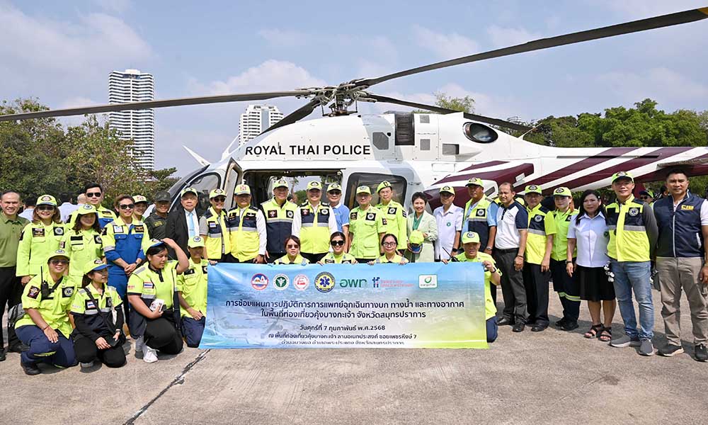 นางกลอยตา ณ ถลาง รองกรรมการผู้จัดการใหญ่ งานบริหารความยั่งยืนและสื่อสารองค์กร บริษัท บางจาก คอร์ปอเรชั่น จำกัด (มหาชน) พร้อมด้วย เรืออากาศเอก นพ.อัจฉริยะ แพงมา เลขาธิการสถาบันการแพทย์ฉุกเฉินแห่งชาติ นาวาเอก (พิเศษ) นพ.พิสิทธิ์ เจริญยิ่ง รองเลขาธิการสถาบันการแพทย์ฉุกเฉินแห่งชาติ นายศุภมิตร ชิณศรี ผู้ว่าราชการจังหวัดสมุทรปราการ ดร.ชูวิทย์ มิตรชอบ รองผู้อำนวยการ องค์การบริหารการพัฒนาพื้นที่พิเศษเพื่อการท่องเที่ยวอย่างยั่งยืน (องค์การมหาชน) หรือ อพท. ร่วมพิธีเปิดการซ้อมแผนการปฏิบัติการการแพทย์ฉุกเฉิน ทางบก ทางน้ำและทางอากาศในพื้นที่ท่องเที่ยวคุ้งบางกระเจ้า เพื่อร่วมบริหารจัดการป้องกันและการตอบสนองต่อสภาวะวิกฤตและเหตุฉุกเฉินที่จะเกิดขึ้นกับประชาชนและนักท่องเที่ยวในพื้นที่ท่องเที่ยวคุ้งบางกะเจ้าและสามารถเข้าถึงระบบการแพทย์ฉุกเฉินอย่างทั่วถึงภายใต้ความปลอดภัยตามมาตรฐาน ยกระดับการท่องเที่ยวอย่างยั่งยืน จัดโดย อพท. ณ ลานอเนกประสงค์ ซอยเพชรหึงษ์ 7 จังหวัดสมุทรปราการ