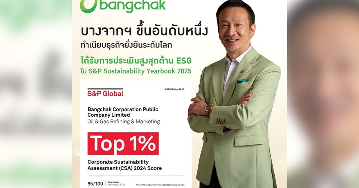 บริษัท บางจาก คอร์ปอเรชั่น จำกัด (มหาชน) ได้รับการประเมินด้านความยั่งยืนระดับสูงสุด Top 1%ของกลุ่มอุตสาหกรรม Oil & Gas Refinery and Marketing ในทำเนียบ “The Sustainability Yearbook 2025” จากการประเมินของ S&P Global Corporate Sustainability Assessment (CSA) ประจำปี 2024