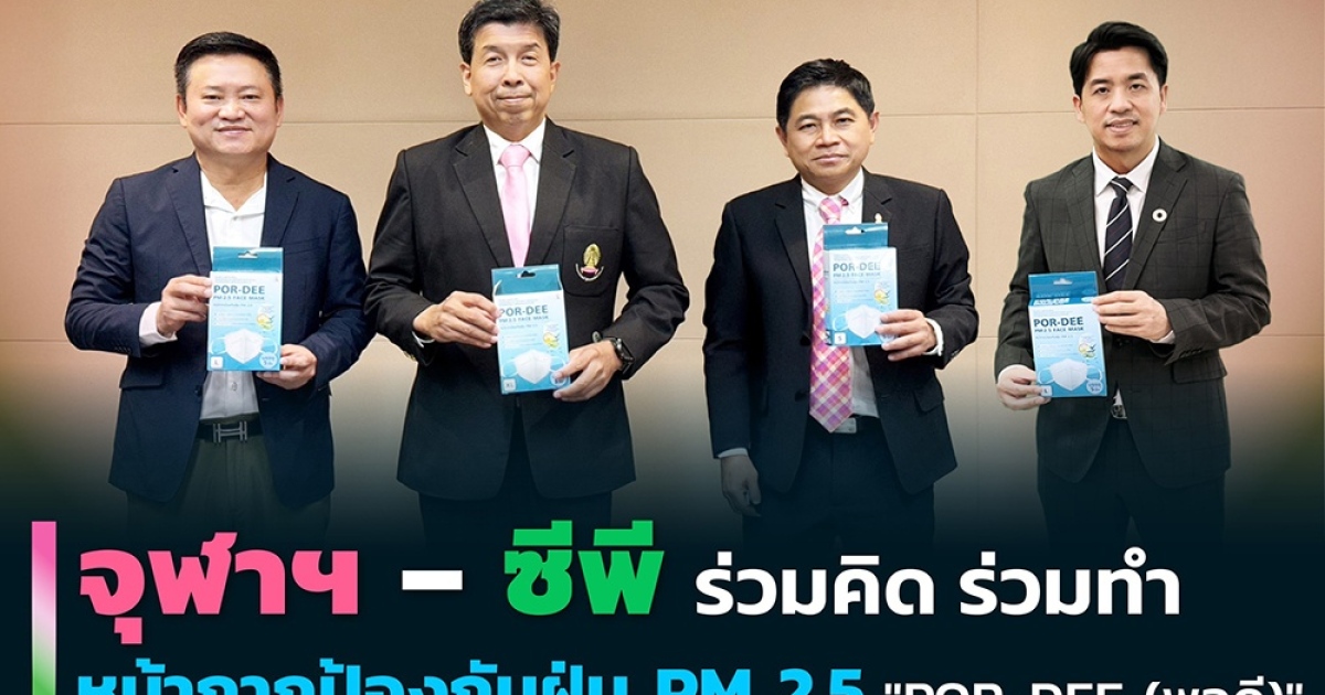 ฝุ่น PM 2.5 วิกฤติ! แพทยศาสตร์ จุฬาฯ – ซีพี เปิดตัวหน้ากาก “POR-DEE” นวัตกรรมเพื่อสุขภาพ รายได้หลังหักค่าใช้จ่ายบริจาคให้โรงพยาบาลจุฬาฯและคณะแพทยศาสตร์ จุฬาฯ