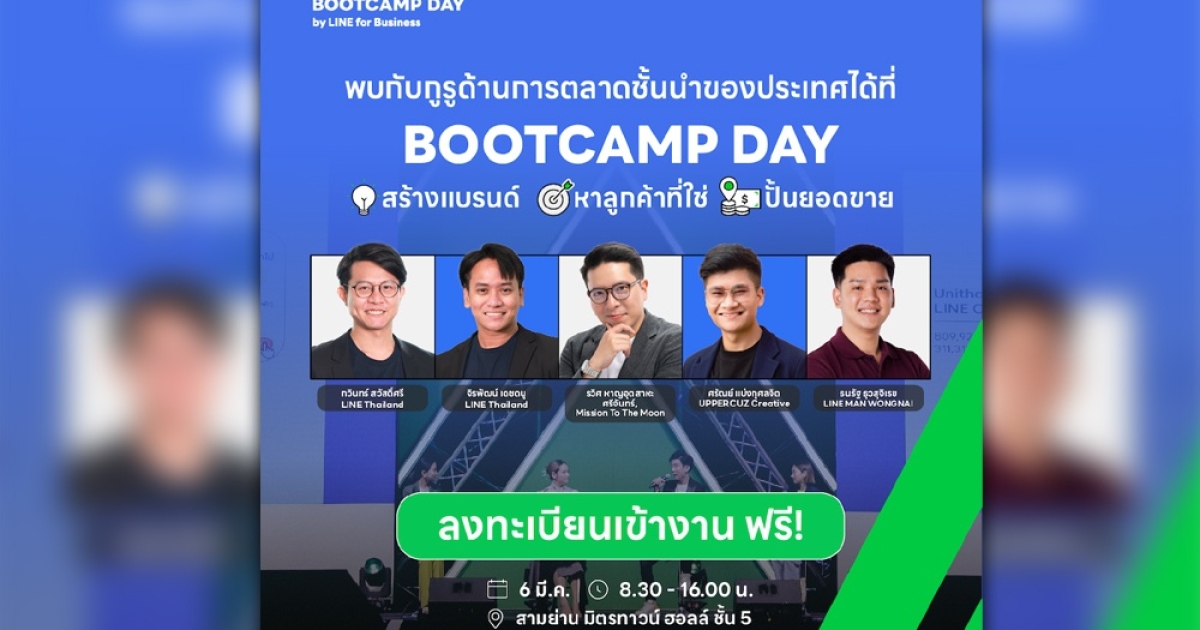 โค้งสุดท้ายลงทะเบียน BOOTCAMP DAY 2025 สัมมนาฟรี! สำหรับ SME ไทย อัพสกิล สร้างแบรนด์ ปั้นยอดขายด้วย LINE 6 มีนาคมนี้