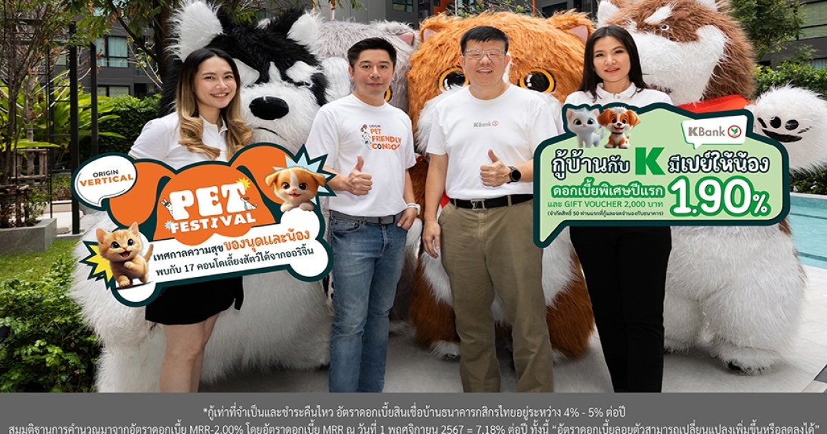 กสิกร ไทยจับมือออริจิ้น เวอร์ติเคิล จัดกิจกรรม ORIGIN PET FESTIVAL ยกทัพ 17 คอนโดคุณภาพ มอบดอกเบี้ยพิเศษ 1.90% ปีแรก