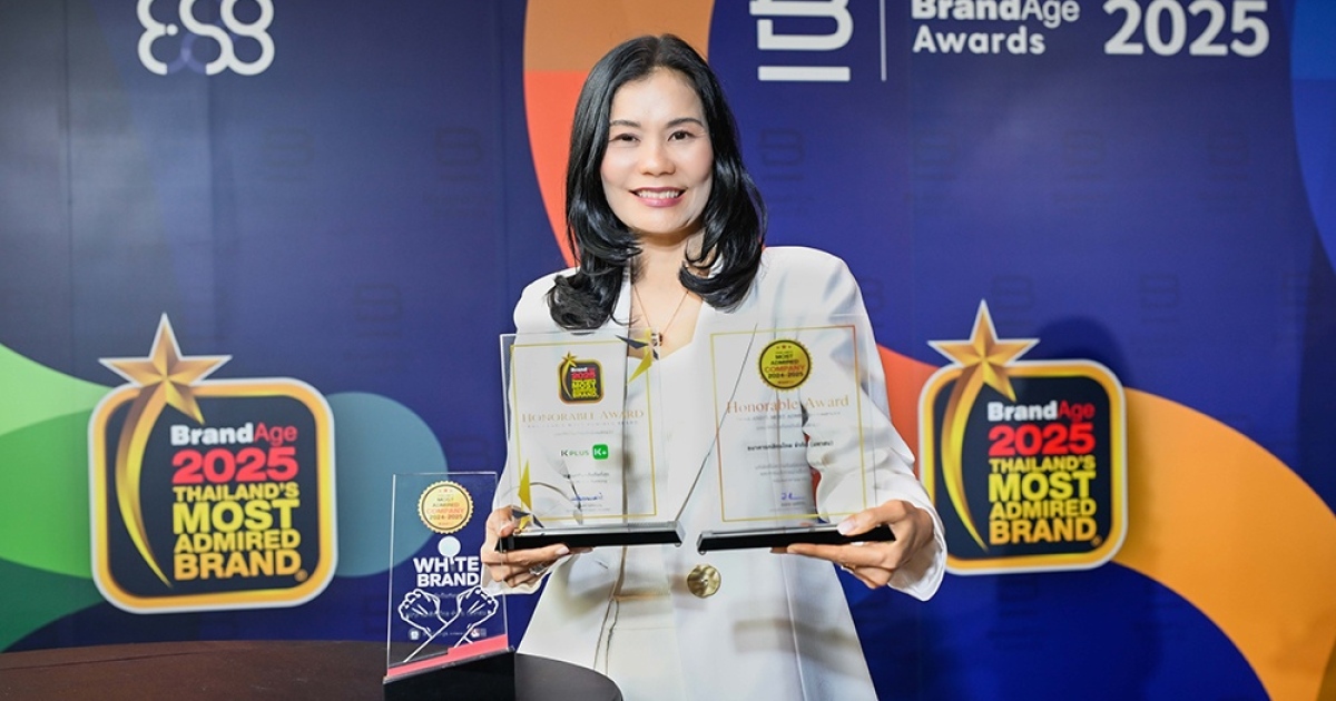 นางสาวจิตราวิณี วรรณกร ผู้ช่วยผู้จัดการใหญ่ ธนาคารกสิกรไทย เป็นผู้แทนธนาคาร รับมอบ 3 รางวัลสูงสุดซึ่งยกย่องบริษัทและแบรนด์ที่ได้รับความเชื่อถือจากผู้บริโภค ได้แก่ รางวัล 2025 White Brand ที่มอบให้องค์กรที่มีธรรมาภิบาล จริยธรรมโดยรวมในการดำเนินธุรกิจต่อสังคมและสิ่งแวดล้อม รางวัลธนาคารที่มีความน่าเชื่อถือสูงสุดด้านความรับผิดชอบต่อสังคมและการบริการน่าเชื่อถือสูงสุดในกลุ่มธนาคารพาณิชย์ และ K PLUS ได้รับรางวัลโมบายแบงกิ้งที่น่าเชื่อถือและลูกค้าไว้วางใจใช้บริการอันดับ 1 จากผู้บริโภคในหมวดธนาคารและบริการทางการเงิน กลุ่มโมบายแบงกิ้ง จากผลสำรวจความคิดเห็น Thailand’s Most Admired Company และ Thailand’s Most Admired Brand ประจำปี 2024-2025 จัดโดยนิตยสาร BrandAge และ BrandAge Online ณ โรงแรมพูลแมน คิง เพาเวอร์ กรุงเทพฯ ถนนรางน้ำ เมื่อเร็ว ๆ นี้