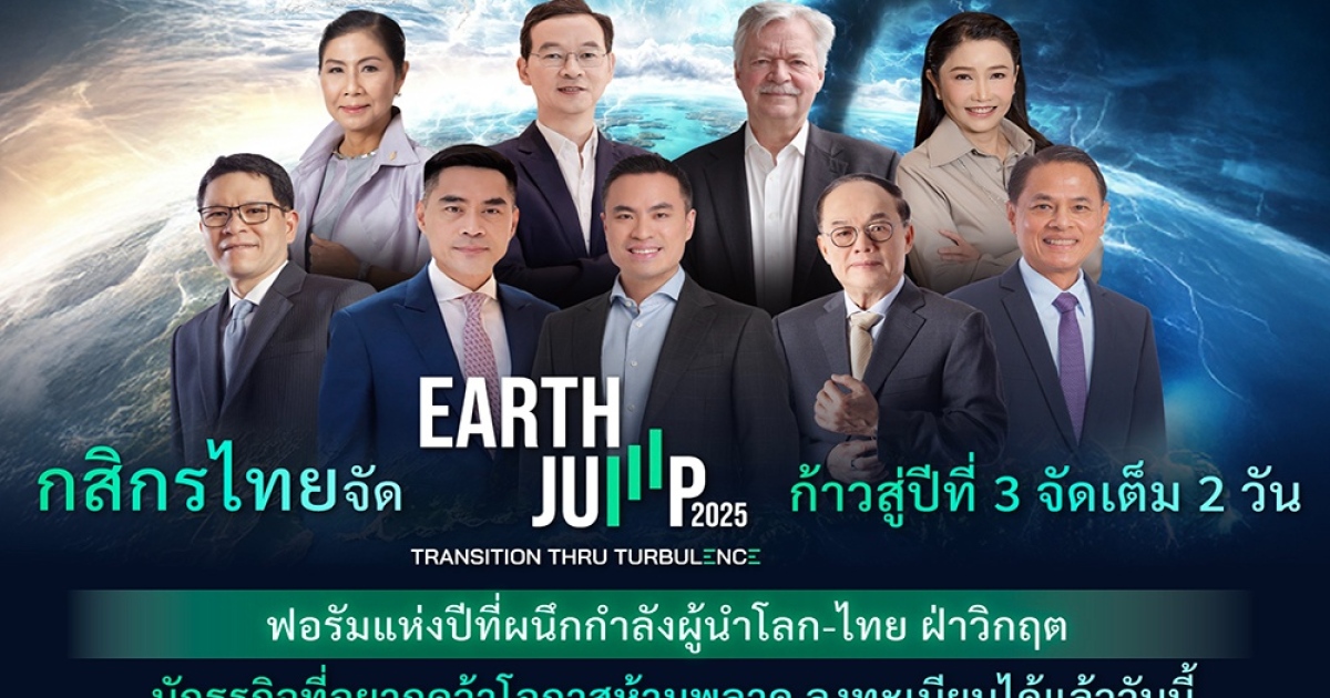 กสิกรไทยจัด EARTH JUMP ก้าวสู่ปีที่ 3 วันที่ 28-29 พ.ค. 68 ฟอรัมแห่งปีที่ผนึกกำลังผู้นำระดับโลก-ไทย ฝ่าวิกฤต นักธุรกิจที่อยากคว้าโอกาสห้ามพลาด ลงทะเบียนได้แล้ววันนี้