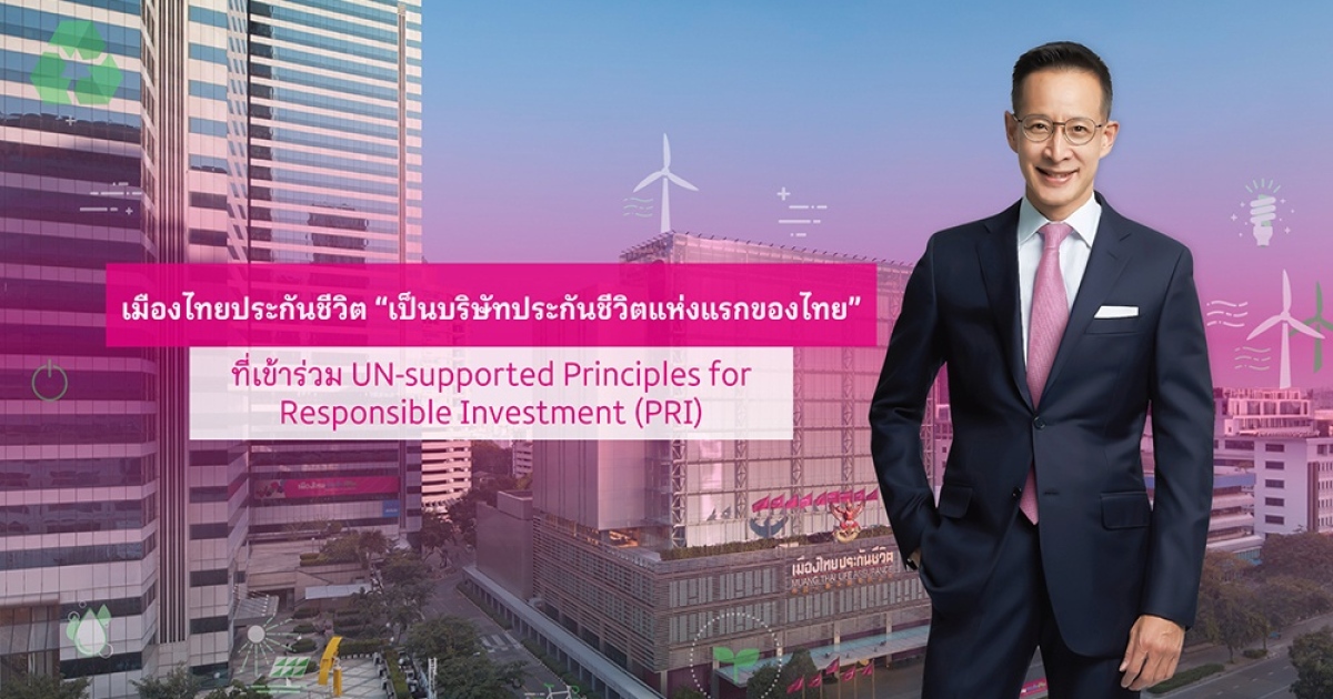 เมืองไทยประกันชีวิต เดินหน้านโยบายการสร้างความยั่งยืนในทุกมิติ พร้อมประกาศเป็นบริษัทประกันชีวิตแห่งแรกของไทยเข้าร่วมลงนาม UN-supported Principles for Responsible Investment (PRI)