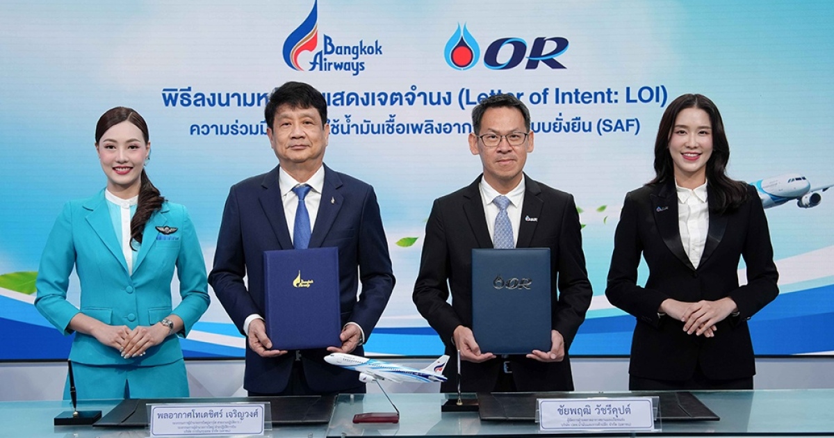นายชัยพฤฒิ วัชรีคุปต์ ผู้จัดการฝ่ายตลาดอากาศยานและเรือขนส่ง บริษัท ปตท.น้ำมันและการค้าปลีก จำกัด (มหาชน) (OR) และนายเดชิศร์ เจริญวงศ์ รองกรรมการผู้อำนวยการใหญ่อาวุโส สายงานปฏิบัติการ / รองกรรมการผู้อำนวยการใหญ่ ฝ่ายปฏิบัติการบิน บริษัท การบินกรุงเทพ จำกัด (มหาชน) หรือ สายการบินบางกอกแอร์เวยส์ ร่วมลงนามหนังสือแสดงเจตจำนง (LOI) เรื่อง การซื้อน้ำมันเชื้อเพลิงอากาศยานแบบยั่งยืน (Sustainable Aviation Fuel: SAF) โดยผู้ผลิตภายในประเทศเป็นครั้งแรกของประเทศไทย สำหรับใช้ปฏิบัติการบินในเที่ยวบินของสายการบินบางกอกแอร์เวย์ส ณ สำนักงานใหญ่สายการบินบางกอกแอร์เวย์ส ถนนวิภาวดีรังสิต ตอบโจทย์เป้าหมายการพัฒนาอย่างยั่งยืนของทั้งสองบริษัท พร้อมผลักดันอุตสาหกรรมการบินของประเทศไทยก้าวสู่อนาคตการบินที่เป็นมิตรต่อสิ่งแวดล้อม