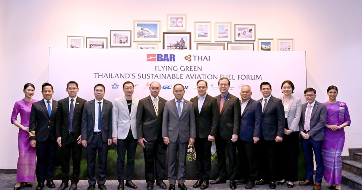 งาน “Flying Green: Thailand’s Sustainable Aviation Fuel Forum” จัดขึ้นเพื่อแลกเปลี่ยนองค์ความรู้ ความเชี่ยวชาญ ประสบการณ์ หารือประเด็นความพร้อมด้านนโยบาย และแผนการดำเนินงาน ระหว่างผู้เกี่ยวข้องจากทุกภาคส่วน ทั้งผู้กำหนดนโยบาย ผู้ผลิต และสายการบินทั้งของไทยและต่างประเทศ