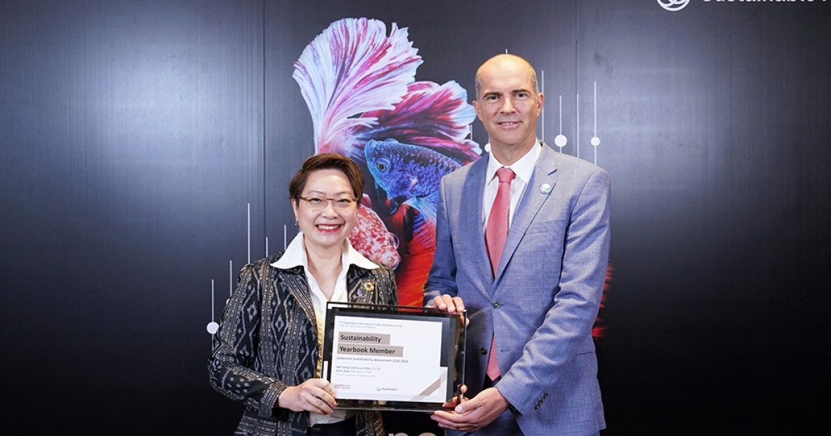 บริษัท ปตท.สำรวจและผลิตปิโตรเลียม จำกัด (มหาชน) หรือ ปตท.สผ. โดยนางสุศมา ปิตากุลดิลก (ซ้าย) ผู้ช่วยกรรมการผู้จัดการใหญ่ สายงานความยั่งยืนและบริหารผู้มีส่วนได้ส่วนเสีย เข้ารับรางวัลจากการที่ ปตท.สผ. ได้รับคัดเลือกให้อยู่ใน Sustainability Yearbook 2025 ของ S&P Global ต่อเนื่องเป็นปีที่ 12 จากนายโรเบิร์ต ดอว์เนา (ขวา) ผู้อำนวยการอาวุโส S&P Global Sustainable1 ซึ่ง ปตท.สผ. มีผลการดำเนินงานด้านความยั่งยืนในระดับ Top 15% ของบริษัทในกลุ่มธุรกิจน้ำมันและก๊าซขั้นต้นและครบวงจรซึ่งเข้าร่วมประเมินทั้งหมด 101 บริษัทจากทั่วโลก