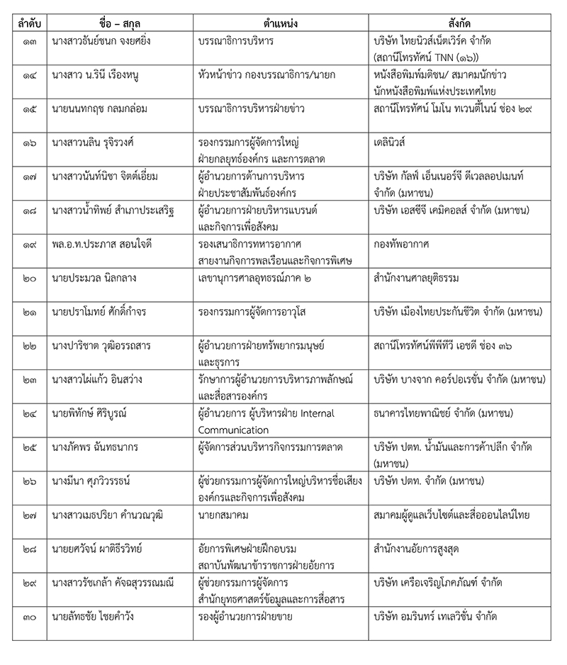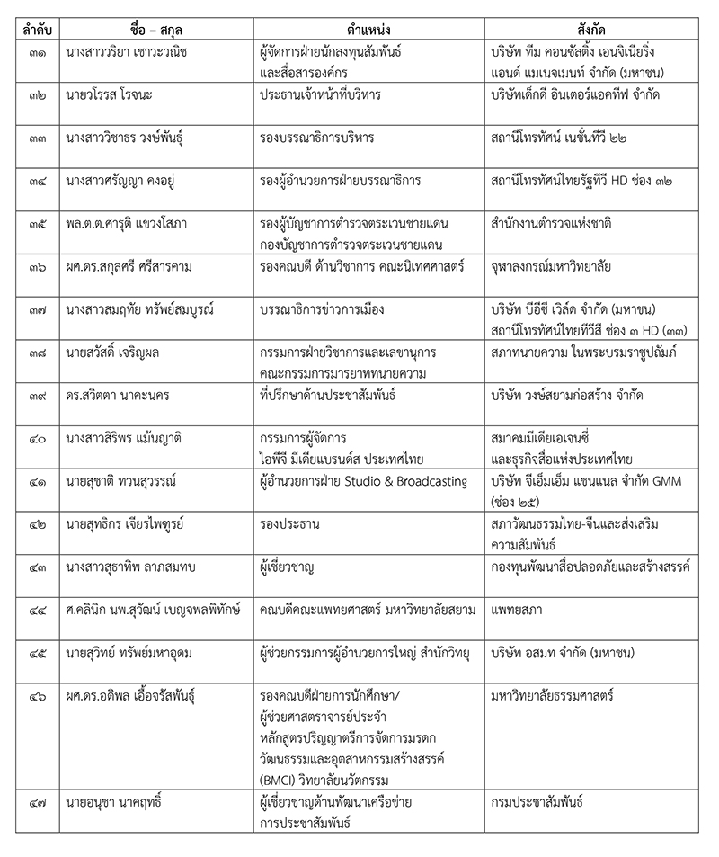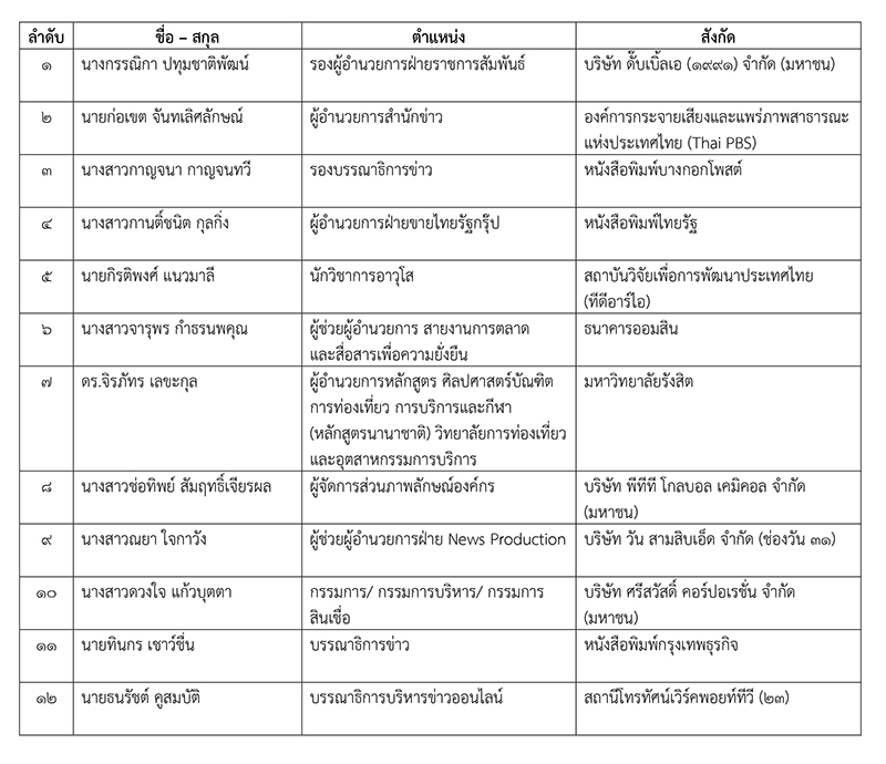 สถาบันอิศรา ประกาศรายชื่อผู้มีสิทธิ์เข้ารับการอบรมหลักสูตรผู้บริหารยุทธศาสตร์การสื่อสารมวลชนระดับสูง (บยสส.) รุ่นที่ 4 จำนวน 52 คน