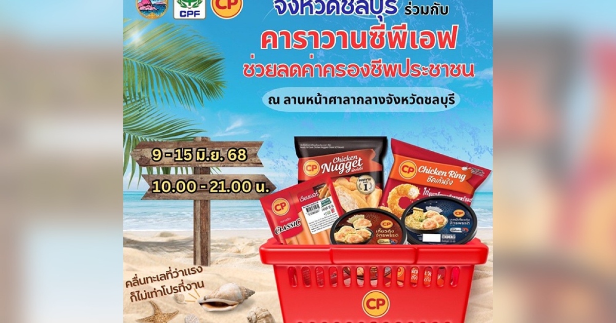 "คาราวานซีพีเอฟ" ขนแบรนด์ดัง CP ห้าดาว ไฮพอร์ค เป็ดเจ้าสัว เชสเตอร์ JerHigh-Jinny เมจิ บุก จ.ชลบุรี จัดโปรฯเด็ด ช่วยบรรเทาภาระค่าครองชีพคนไทย 9 - 15 มิ.ย. 68 พร้อมเปิดศึกมวยมันส์สนั่นโลก “อนุชิต ซีพีเอฟ - ออกศึก ซีพีเอฟ” พบ 2 ผู้ท้าชิงจากจีน