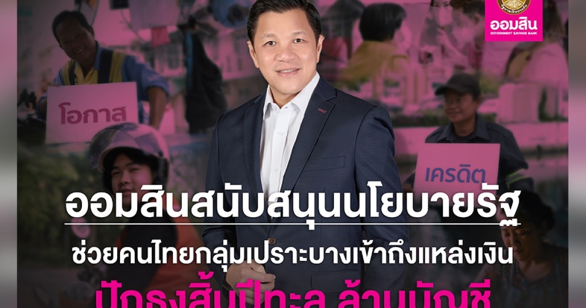 ออมสิน เผยผลสำเร็จช่วยคนไทยเข้าถึงสินเชื่อสถาบันการเงิน คาดถึงสิ้นปีตัวเลขทะลุ 1 ล้านราย พร้อมเดินหน้าช่วยลูกหนี้กว่า 920,000 บัญชี ขับเคลื่อนภารกิจช่วยเหลือสังคมตามข้อสั่งการรัฐบาล