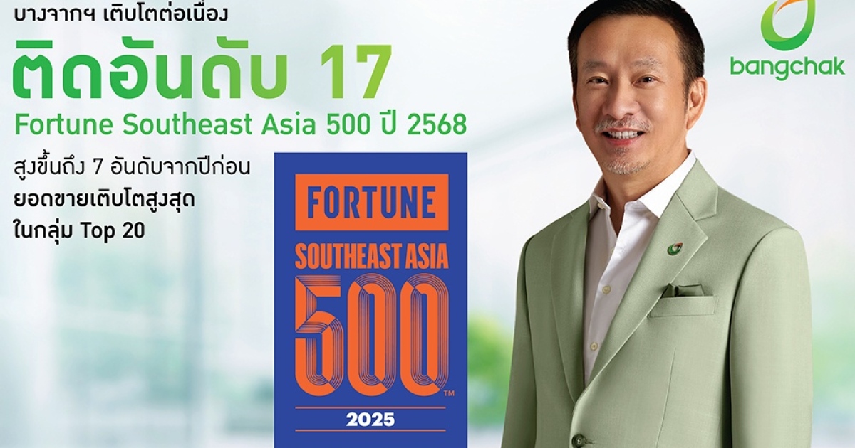 บางจากฯ เติบโตต่อเนื่อง ติดอันดับ 17 Fortune Southeast Asia 500 ปี 2568 สูงขึ้นถึง 7 อันดับจากปีก่อน ยอดขายเติบโตสูงสุดในกลุ่ม Top 20
