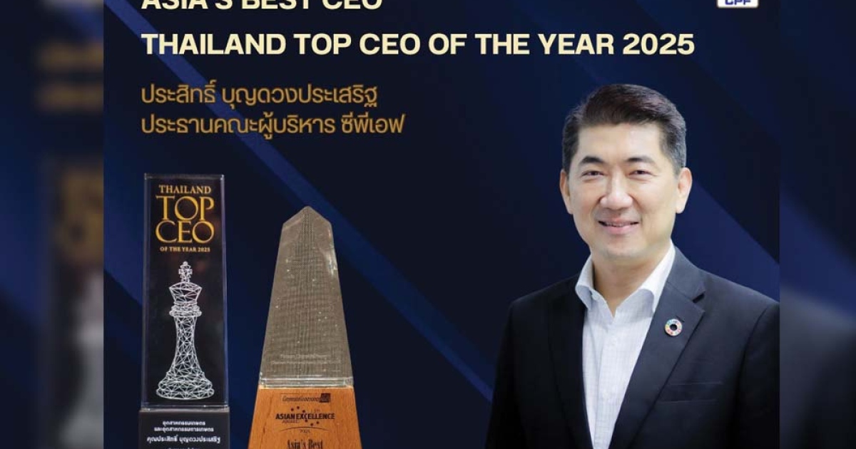 จากแนวนโยบายการทำงานที่เน้นขับเคลื่อนธุรกิจอย่างยั่งยืน โดยให้ความสำคัญทั้งด้านสิ่งแวดล้อม สังคม และธรรมาภิบาล นำแนวคิดนวัตกรรมที่ยั่งยืน (Sustainovation) มาใช้ เพื่อสร้างความมั่นคงทางอาหาร (Food Security) ให้กับผู้บริโภคทั่วโลก ส่งเสริมความเป็นอยู่ที่ดีและสร้างความผูกพันของพนักงานในองค์กร สามารถสร้างความพึงพอใจให้กับผู้มีส่วนได้เสียรอบด้าน รวมถึงการสร้างผลตอบแทนที่เหมาะสมให้กับผู้ถือหุ้น ทำให้ “นายประสิทธิ์ บุญดวงประเสริฐ” ประธานคณะผู้บริหาร บริษัท เจริญโภคภัณฑ์อาหาร จำกัด (มหาชน) ได้รับการยอมรับจากสถาบันชั้นนำในระดับประเทศและภูมิภาค ด้วยรางวัล Asia’s Best CEO และ THAILAND TOP CEO OF THE YEAR 2025