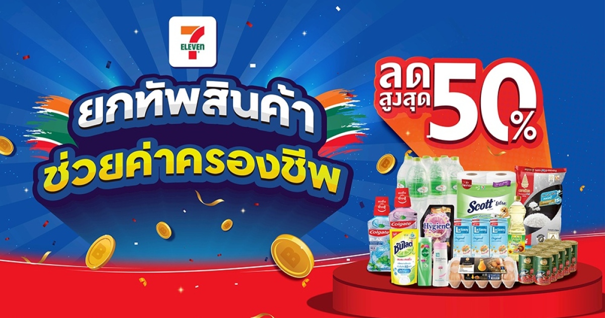 เซเว่น อีเลฟเว่น ยกทัพสินค้าโปรโมชันเอาใจนักช้อปด้วยสินค้าที่หลากหลายรวมมากกว่า 1,800 รายการ ไม่ว่าจะเป็นสินค้ากลุ่มคู่บ้าน คู่ครัว ข้าวสาร น้ำดื่ม นม สินค้ากลุ่มทำความสะอาด กระดาษชำระ รวมถึงเครื่องดื่มและอาหารพร้อมรับประทานที่หลากหลาย มาพร้อมกับส่วนลดมากถึง50% และยังมี code ส่วนลด ให้ลูกค้าได้เลือกซื้อ เลือกช้อป เพื่อกระตุ้นเศรษฐกิจในประเทศและช่วยบรรเทาภาระค่าใช้จ่ายของพี่น้องคนไทย