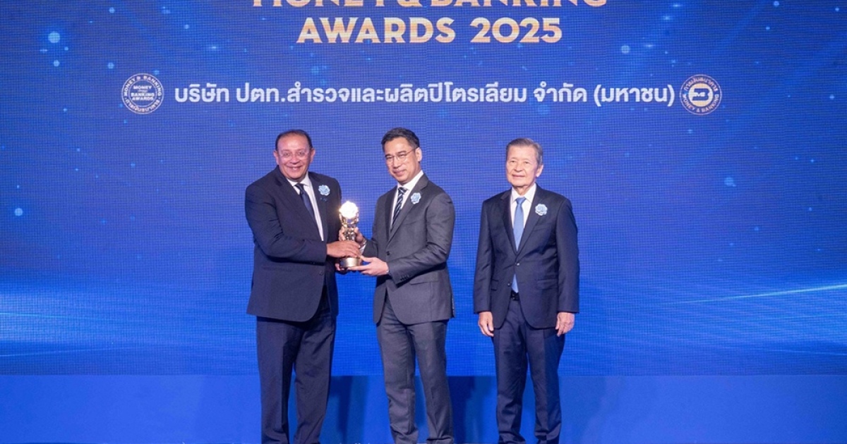 นายมนตรี ลาวัลย์ชัยกุล (ซ้าย) ประธานเจ้าหน้าที่บริหาร บริษัท ปตท.สำรวจและผลิตปิโตรเลียม จำกัด (มหาชน) หรือ ปตท.สผ. ได้รับ 2 รางวัลจากพิธีมอบรางวัลเกียรติยศ “Money & Banking Awards 2025” ได้แก่ รางวัลบริษัทยอดเยี่ยมแห่งปี 2568 ตลาดหลักทรัพย์แห่งประเทศไทย และรางวัลบริษัทยอดเยี่ยมแห่งปี 2568 หมวดธุรกิจพลังงานและสาธารณูปโภค พิธีมอบรางวัลดังกล่าวจัดขึ้นโดยวารสารการเงินธนาคาร โดยมี ดร.เศรษฐพุฒิ สุทธิวาทนฤพุฒิ (กลาง) ผู้ว่าการธนาคารแห่งประเทศไทย และนายสันติ วิริยะรังสฤษฎ์ (ขวา) ประธานกรรมการบริหาร วารสารการเงินธนาคาร ให้เกียรติมอบรางวัล ณ โรงแรมไฮแอท รีเจนซี่ กรุงเทพฯ