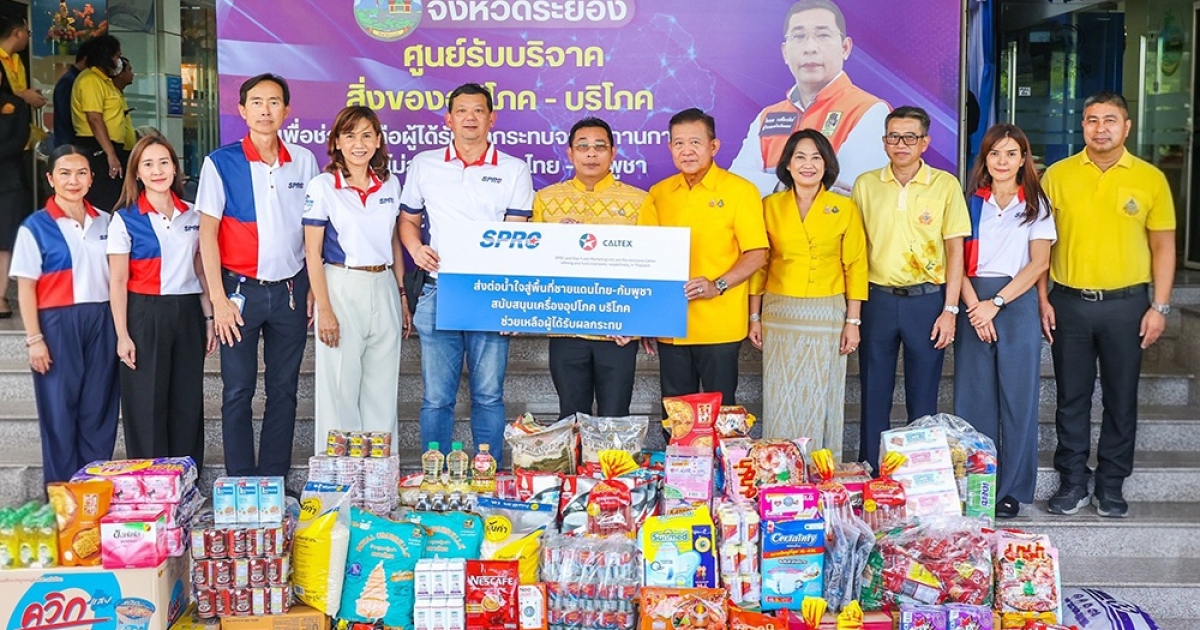 บริษัท สตาร์ ปิโตรเลียม รีไฟน์นิ่ง จำกัด (มหาชน) หรือ SPRC ร่วมกับ คาลเท็กซ์ โดย บริษัท สตาร์ ฟูเอลส์ มาร์เก็ตติ้ง จำกัด ซึ่งเป็นบริษัทในเครือของ SPRC และเป็นผู้ได้รับสิทธิแต่เพียงผู้เดียวในการประกอบธุรกิจน้ำมันเชื้อเพลิงภายใต้ชื่อคาลเท็กซ์ในประเทศไทย นำโดย นายพงษ์กรณ์ ช่อชูวงศ์ รองกรรมการผู้จัดการใหญ่ ด้านปฏิบัติการเพื่อความเป็นเลิศ SPRC (ที่ 5 จากซ้าย) พร้อมด้วยคณะผู้บริหารและพนักงาน มอบสิ่งของอุปโภคบริโภคที่จำเป็น ให้แก่ นายไตรภพ วงศ์ไตรรัตน์ ผู้ว่าราชการจังหวัดระยอง (กลาง) ณ อาคารศาลากลาง ศูนย์ราชการจังหวัดระยอง เพื่อนำไปบรรเทาความเดือดร้อนและช่วยเหลือประชาชนที่ได้รับผลกระทบจากสถานการณ์ความไม่สงบในพื้นที่ชายแดนไทย-กัมพูชา โดย SPRC หวังเป็นอย่างยิ่งว่าการส่งมอบในครั้งนี้ จะเป็นส่วนหนึ่งในการช่วยเหลือสังคมไทยและสร้างขวัญกำลังใจแก่ทุกท่านให้สามารถผ่านพ้นสถานการณ์ที่ท้าทายนี้ไปได้ ซึ่งสะท้อนถึงเจตนารมณ์ของ SPRC ในการยืนหยัดเคียงข้างสังคมไทยในยามเกิดวิกฤต